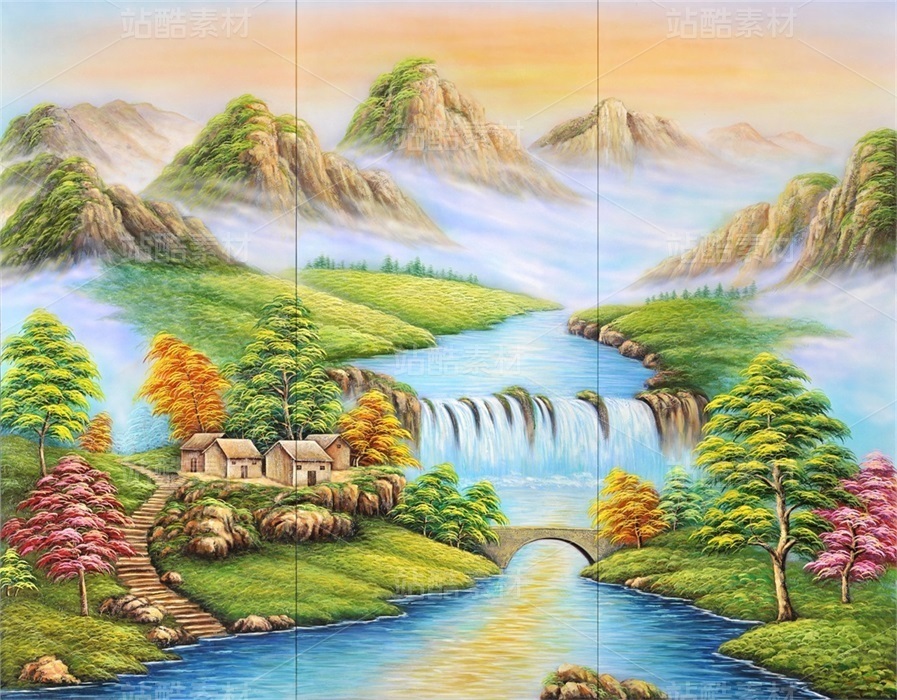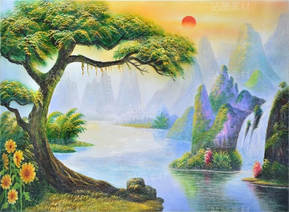 手繪油畫質(zhì)感風(fēng)景水墨山水畫