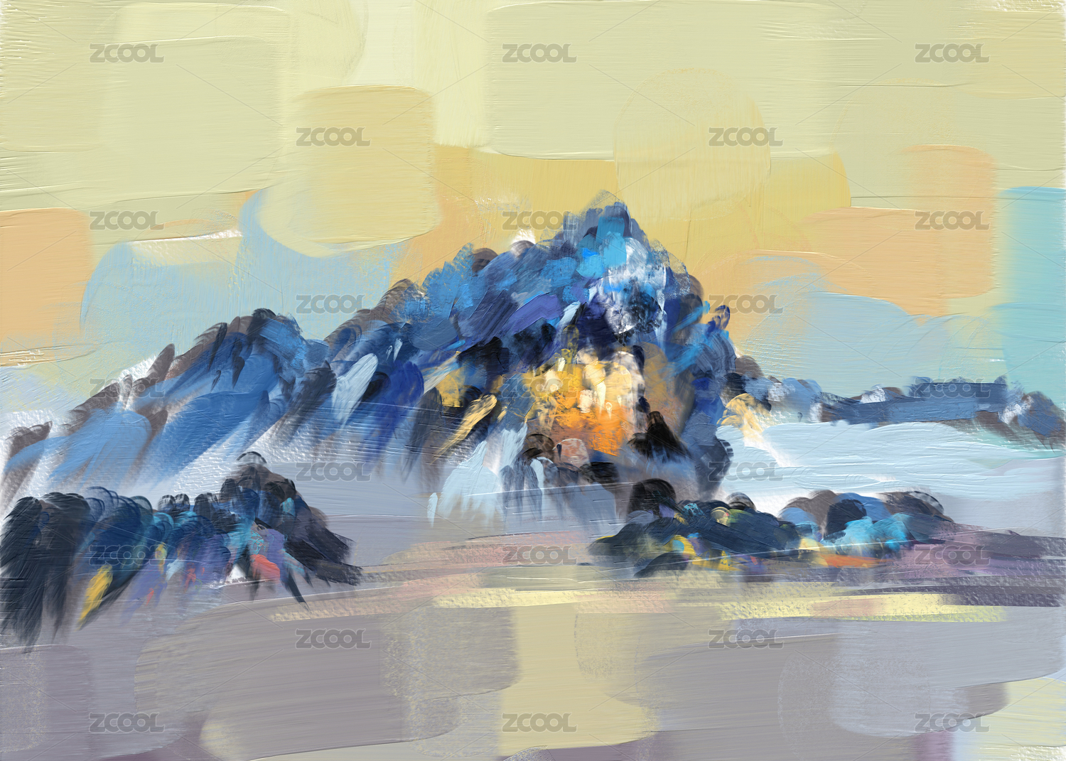 抽象藍(lán)色印象派寫意油畫山水畫