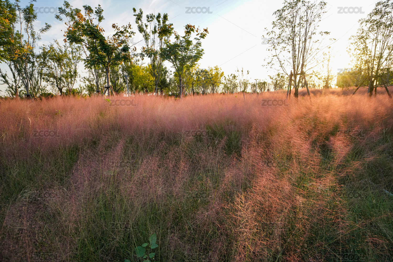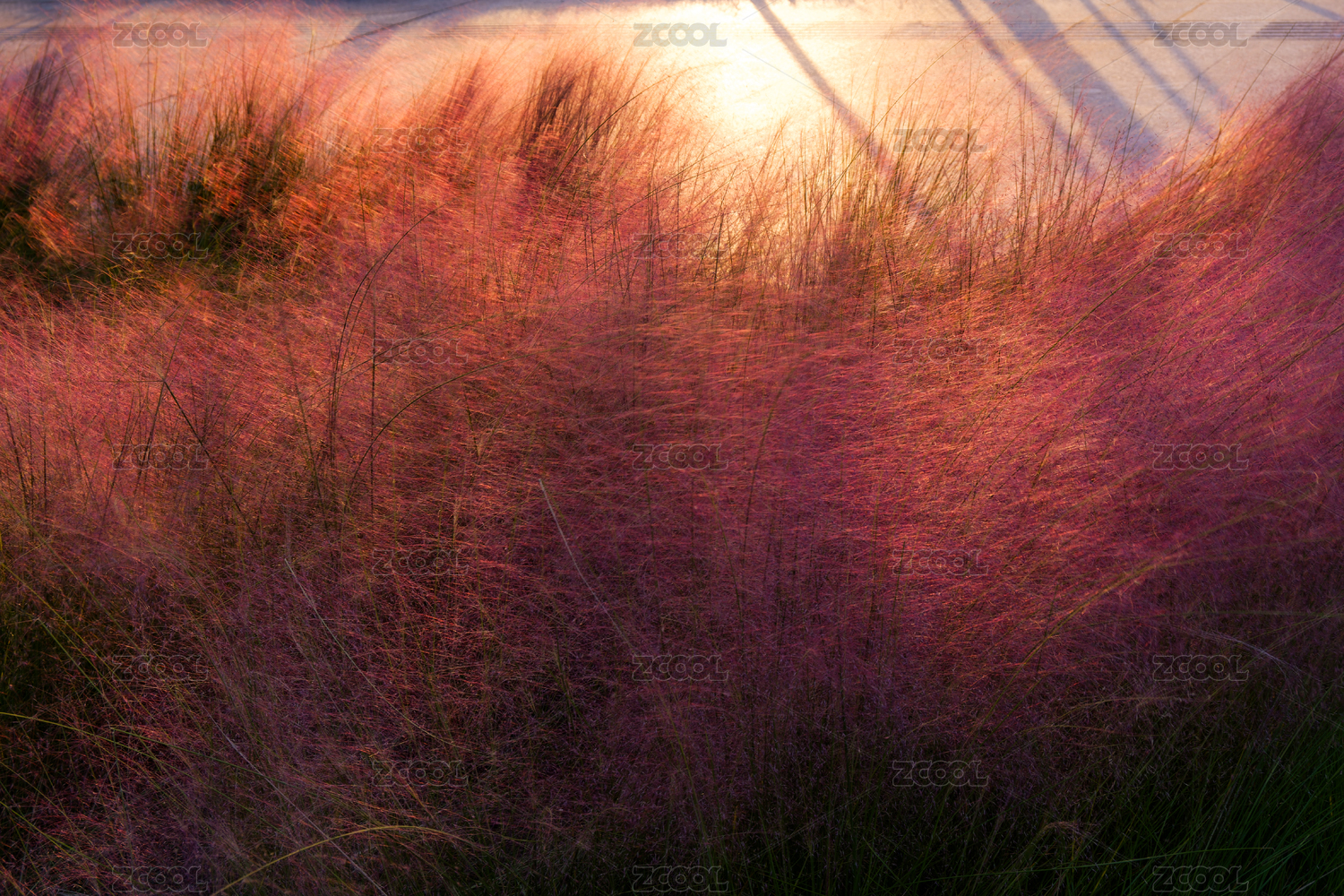朝霞下的粉黛草