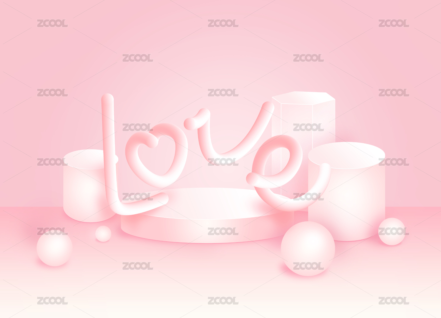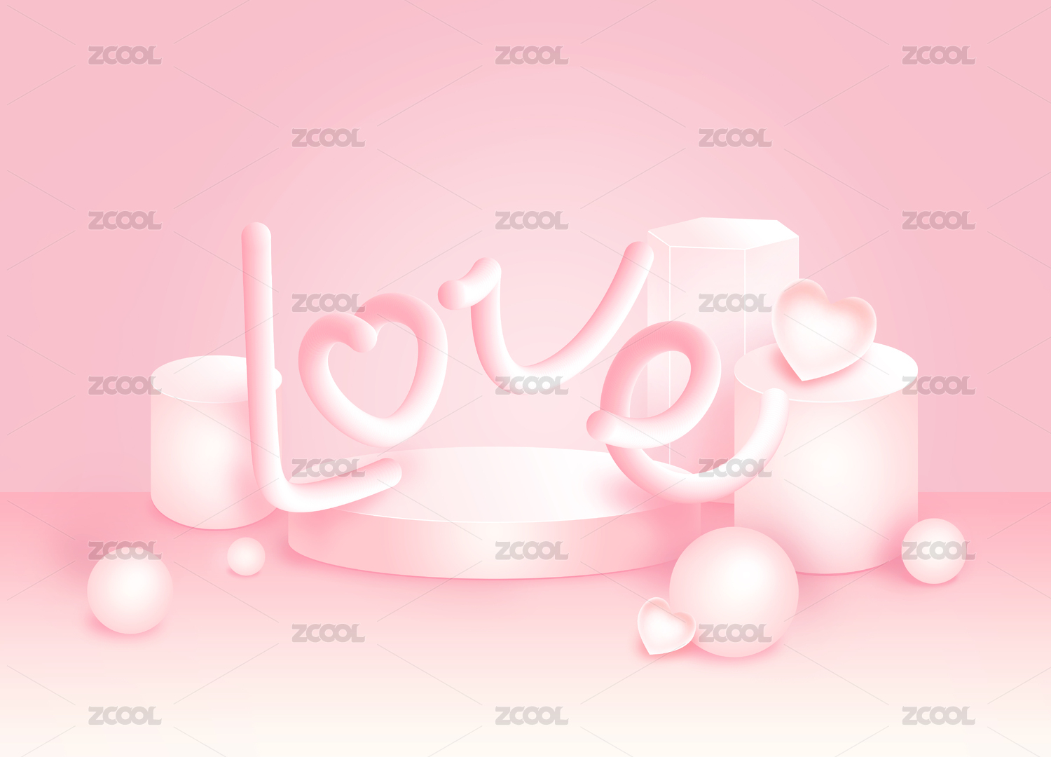 情人節(jié)七夕520粉色3D展臺(tái)海報(bào)設(shè)計(jì)