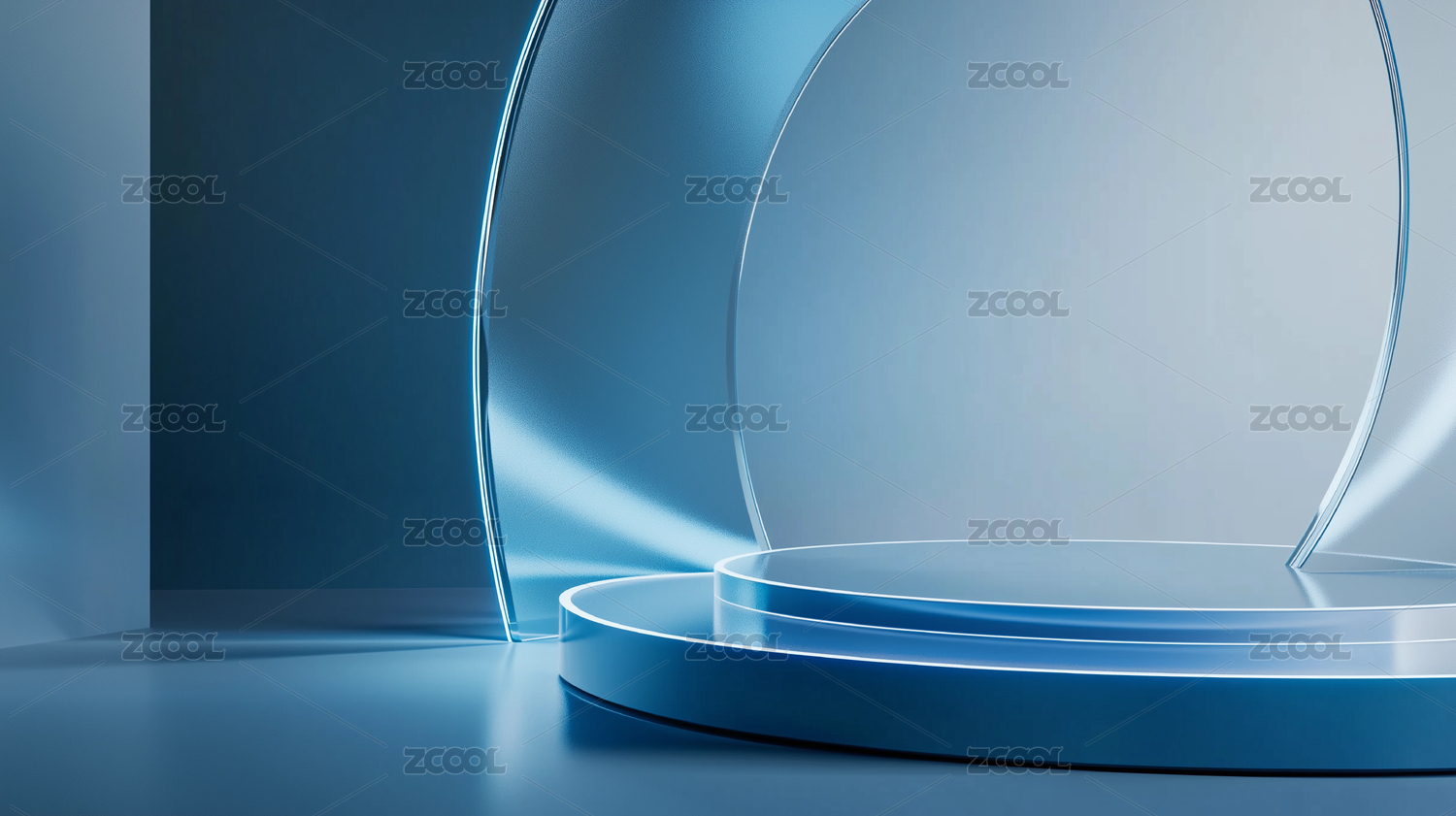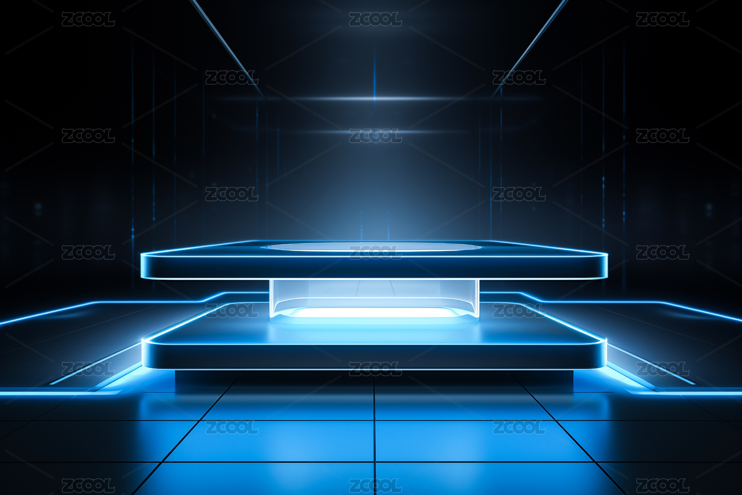 藍(lán)色發(fā)光線條構(gòu)成3D展臺(tái)效果背景