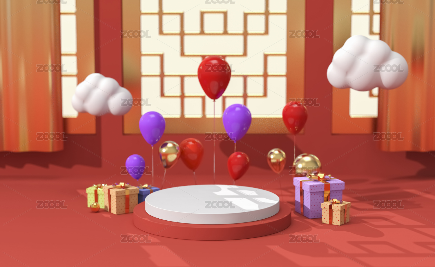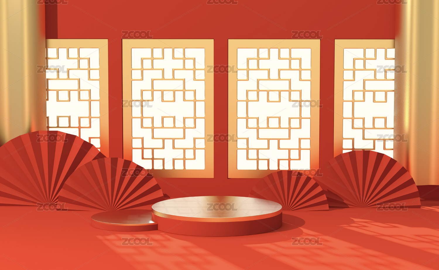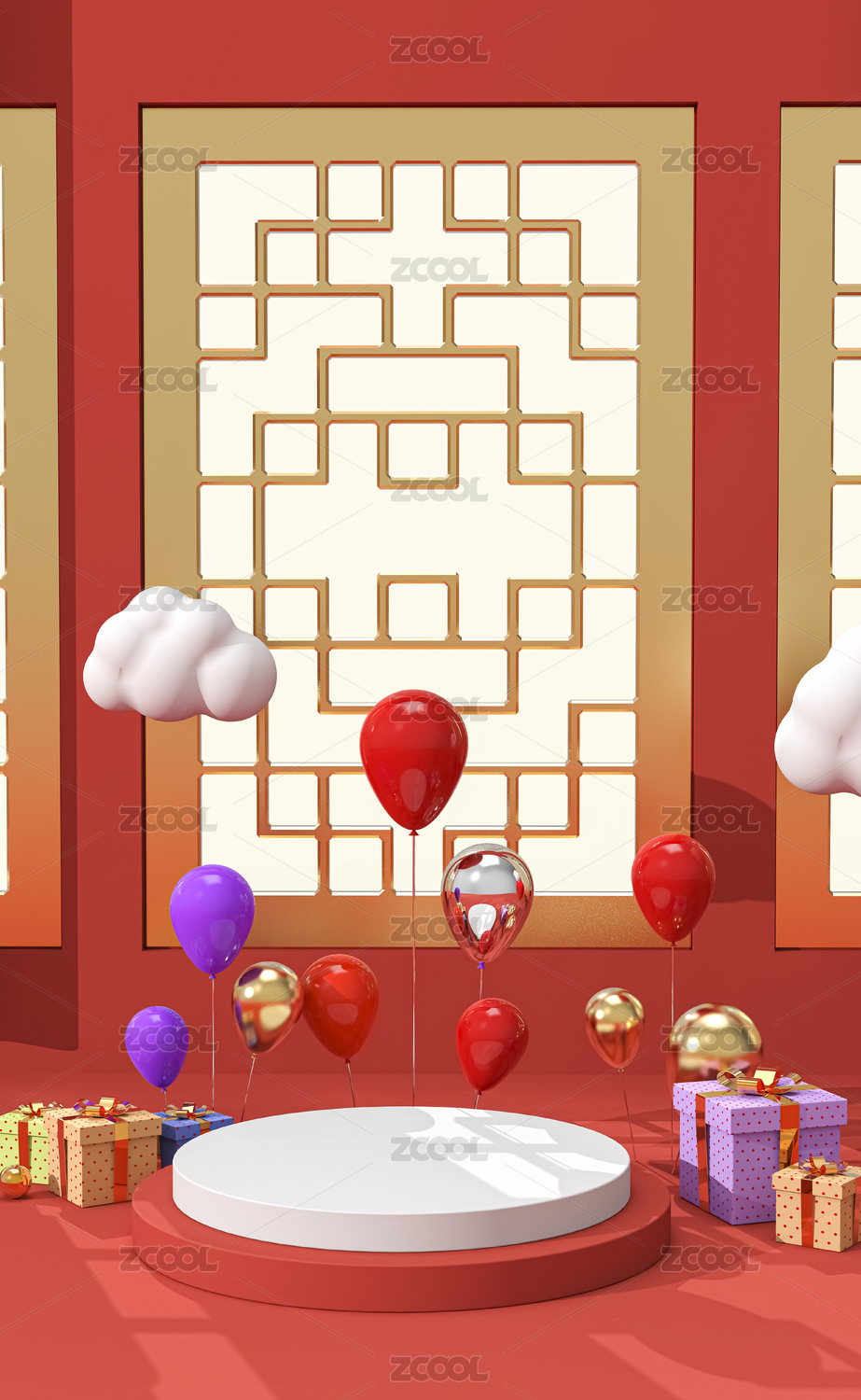 3D渲染的中國風(fēng)電商展臺(tái)