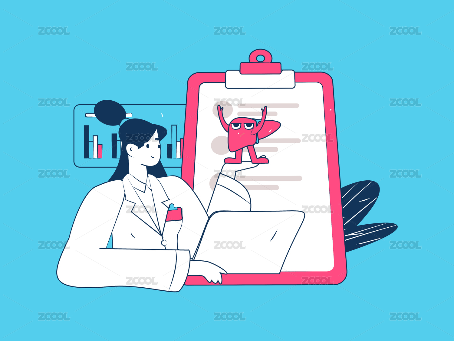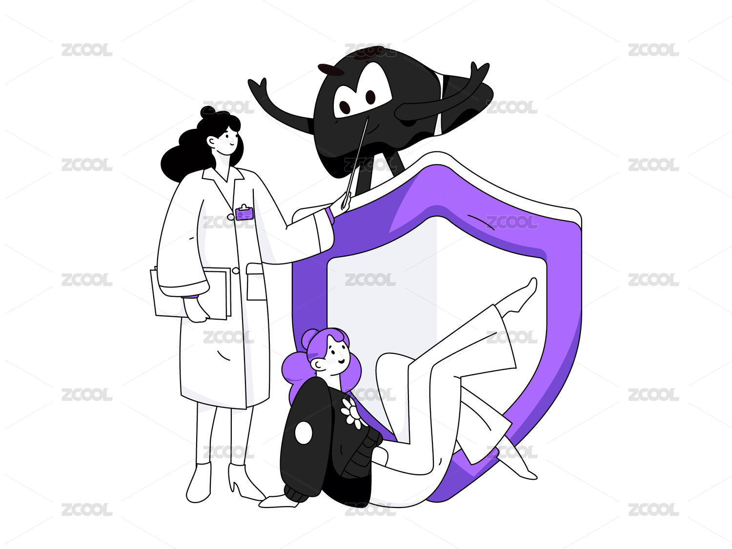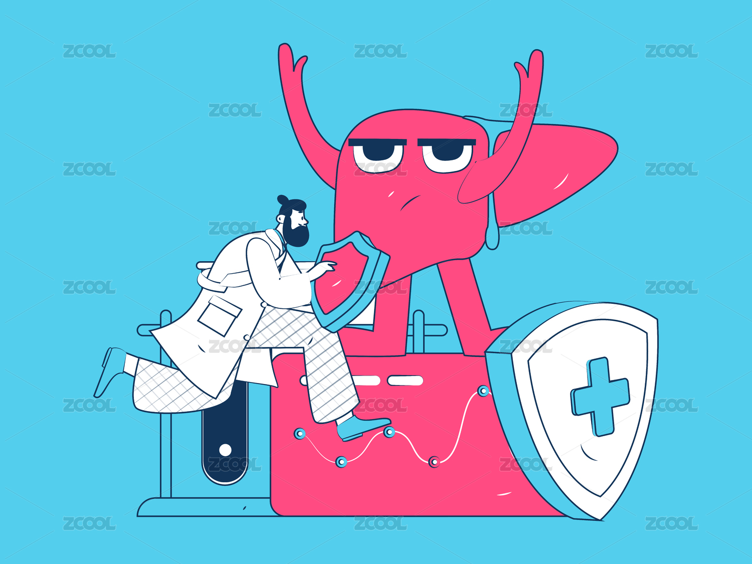 醫(yī)生和肝臟治療醫(yī)療插畫