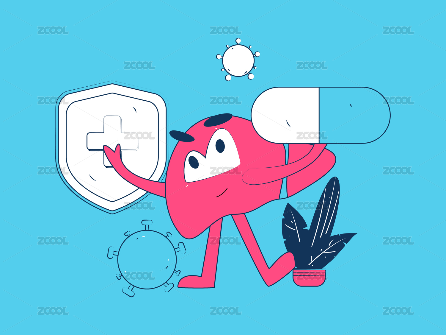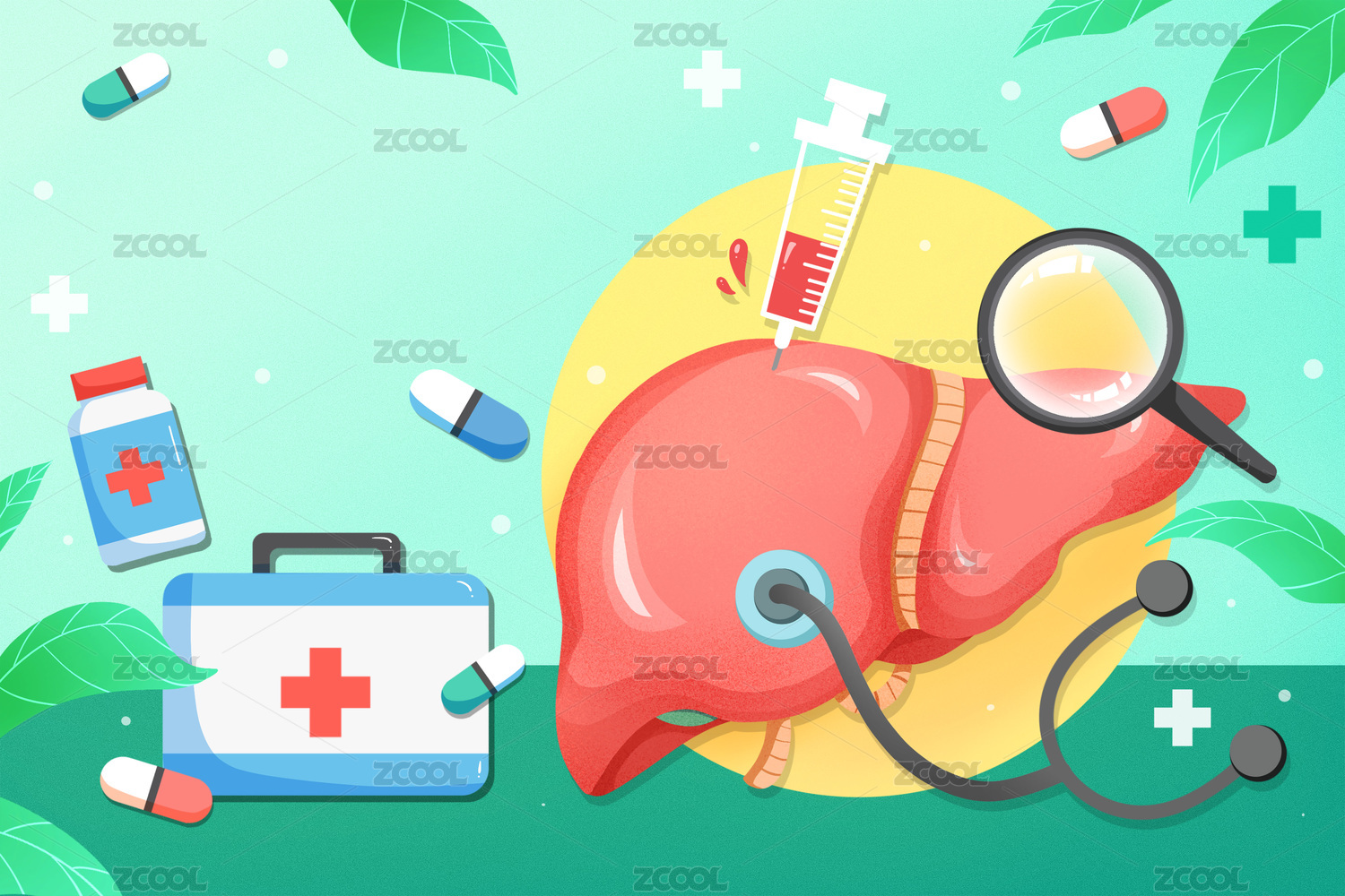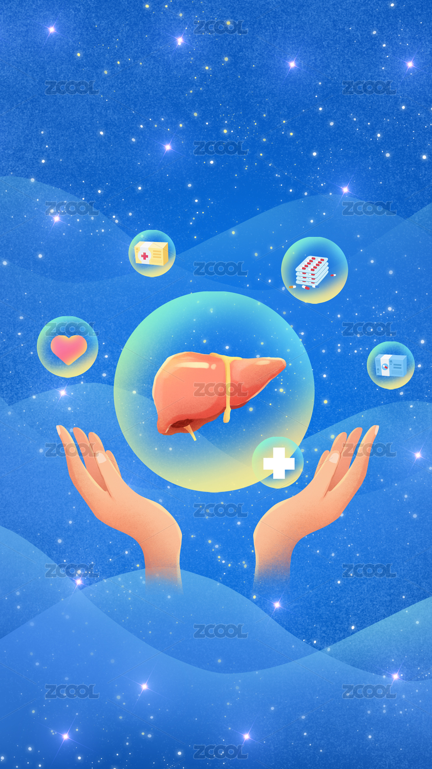 全國愛肝護肝日醫(yī)療健康插畫