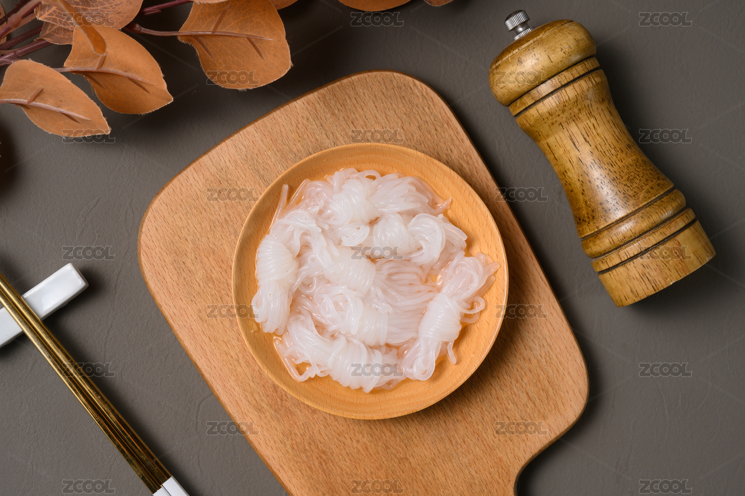 桌面上的盤子里的美味可口的魔芋結(jié)