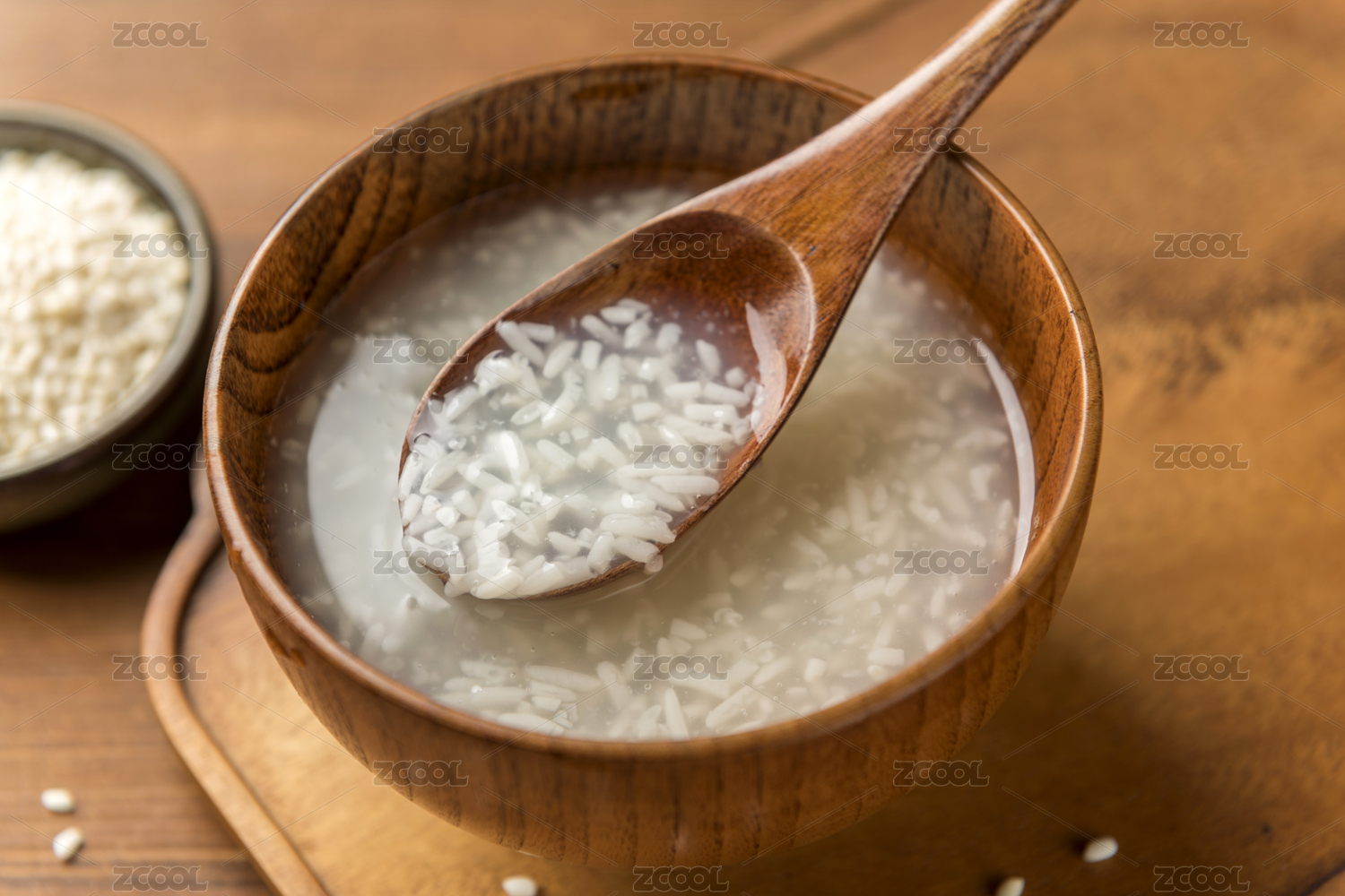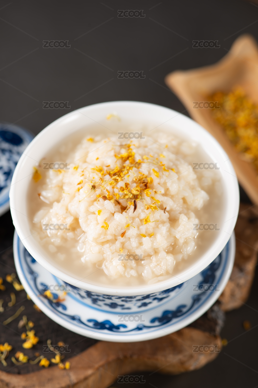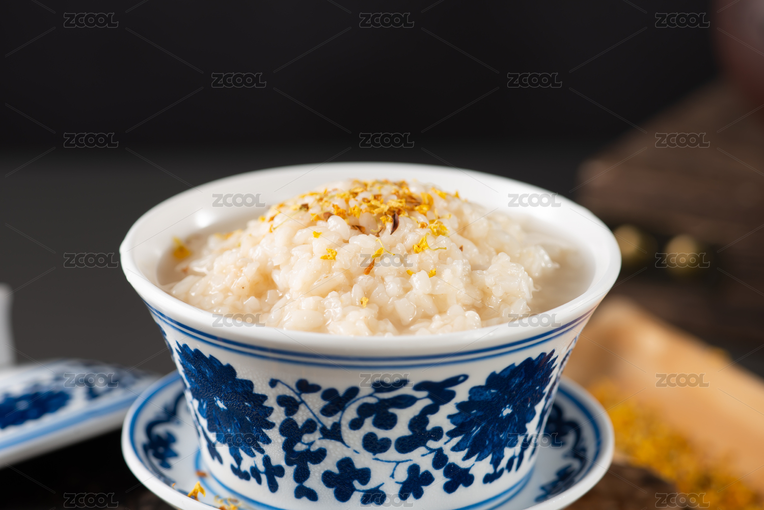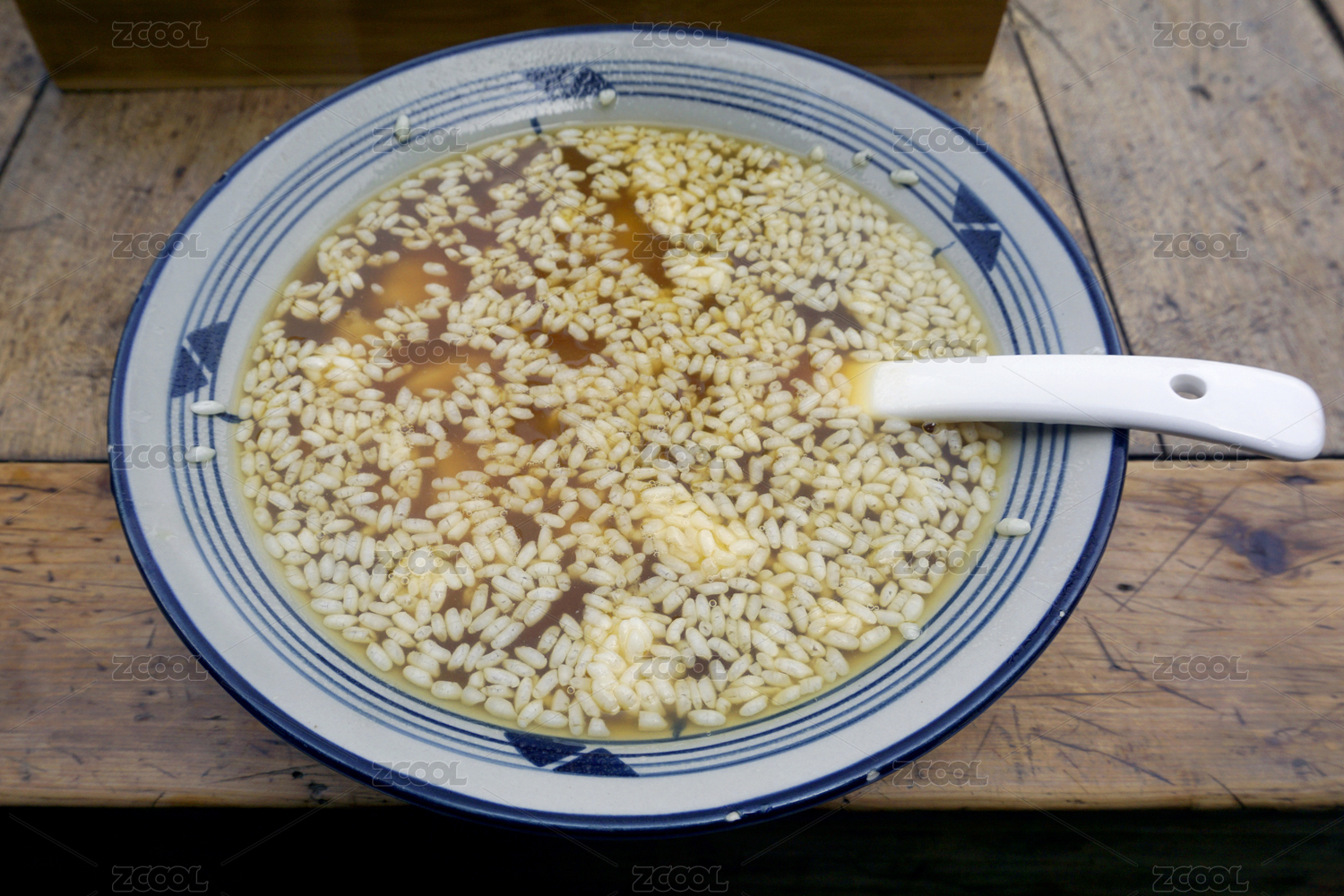 米酒,醪糟,一碗醪糟和江米的俯拍鏡頭