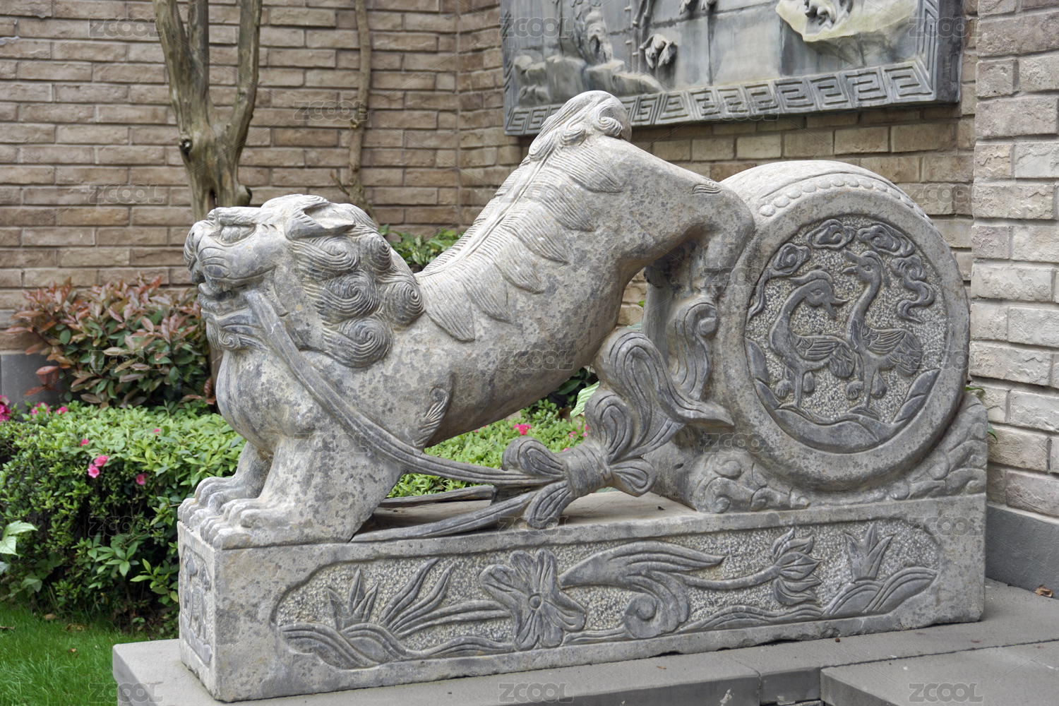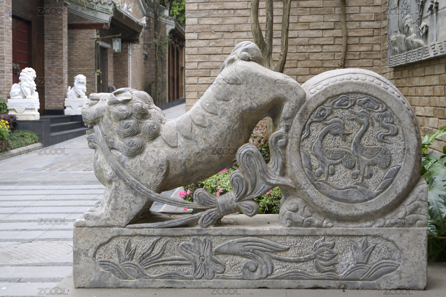 中國四川成都博客小鎮(zhèn) 門枕石石獅雕塑