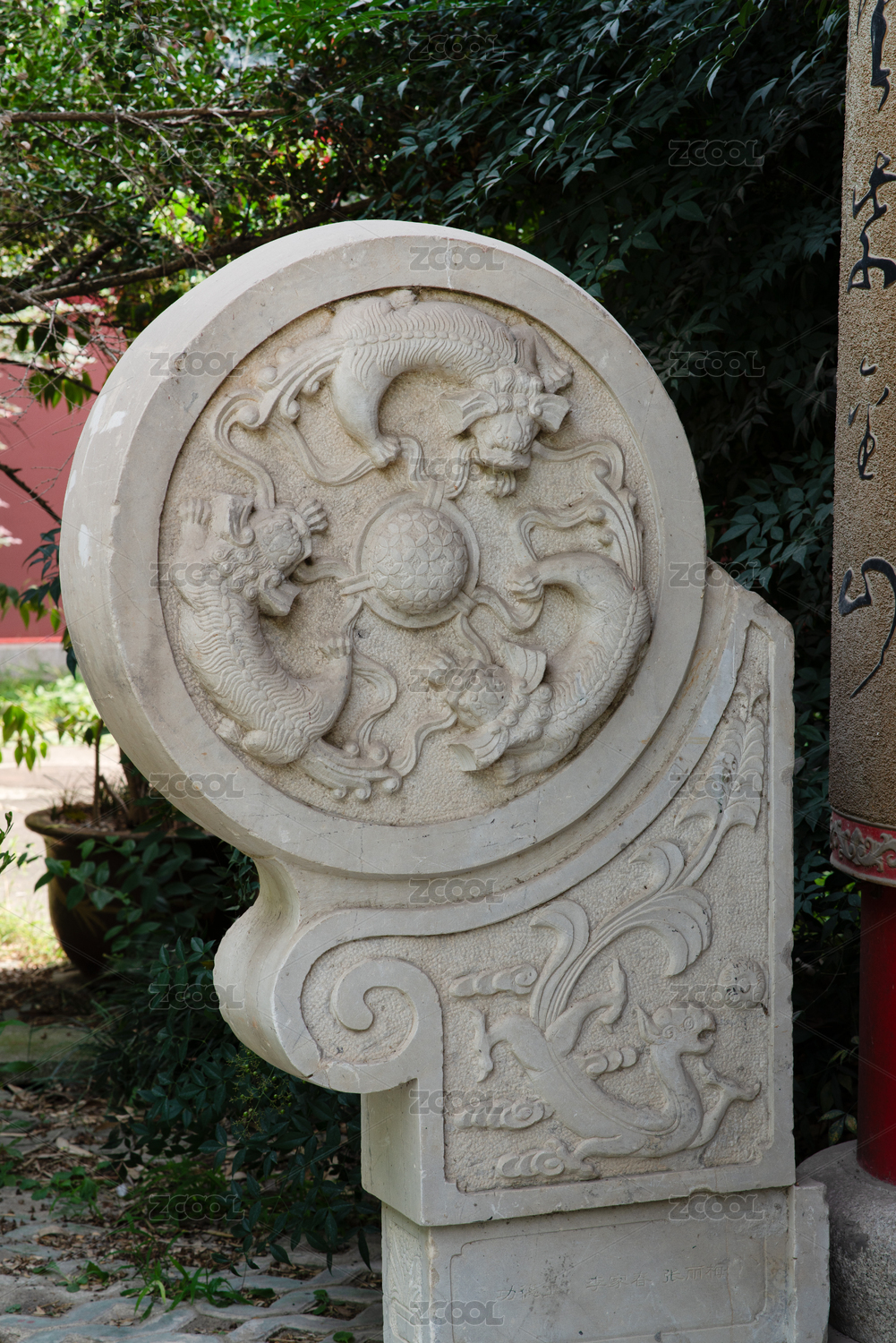 四川老成都民俗公園 抱鼓石雙龍戲珠石刻