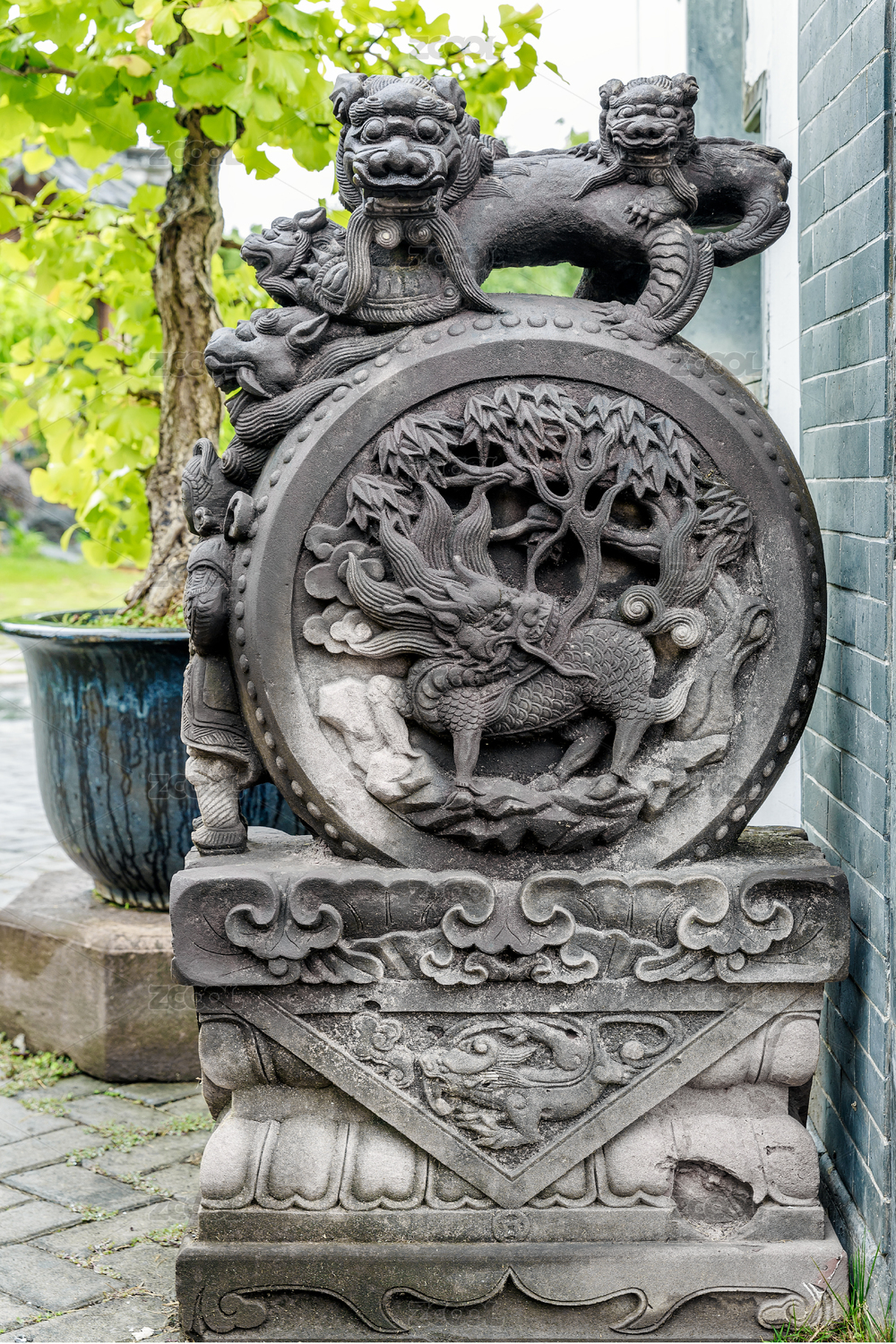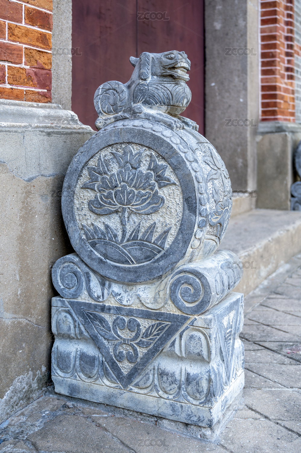 古建筑入口門鼓石