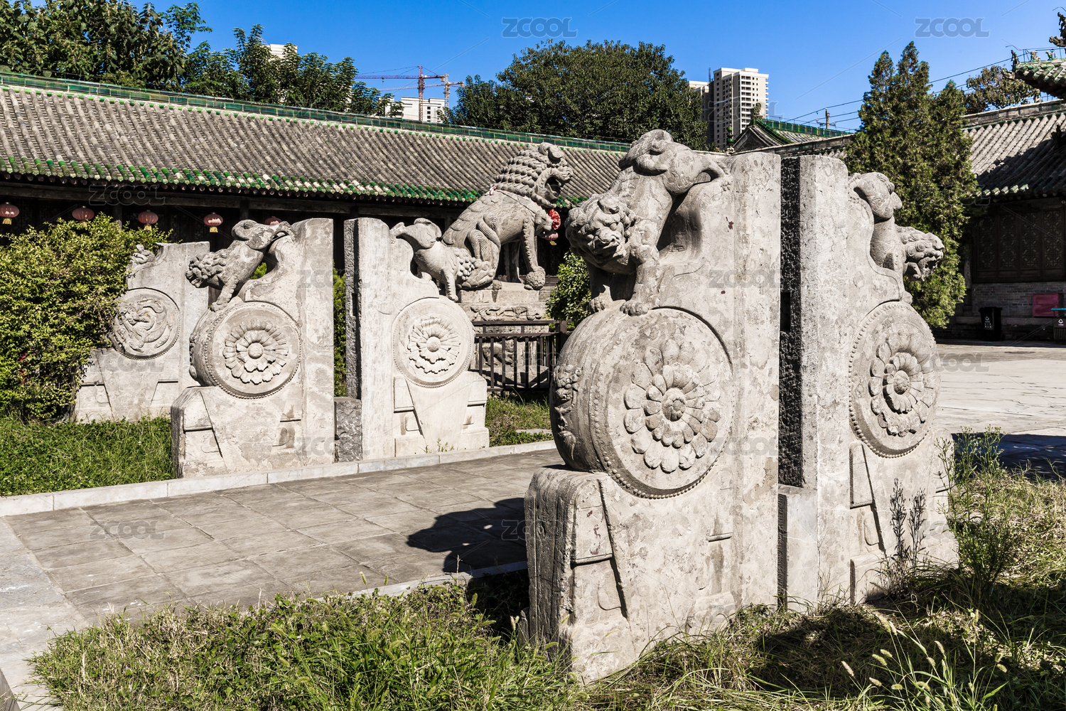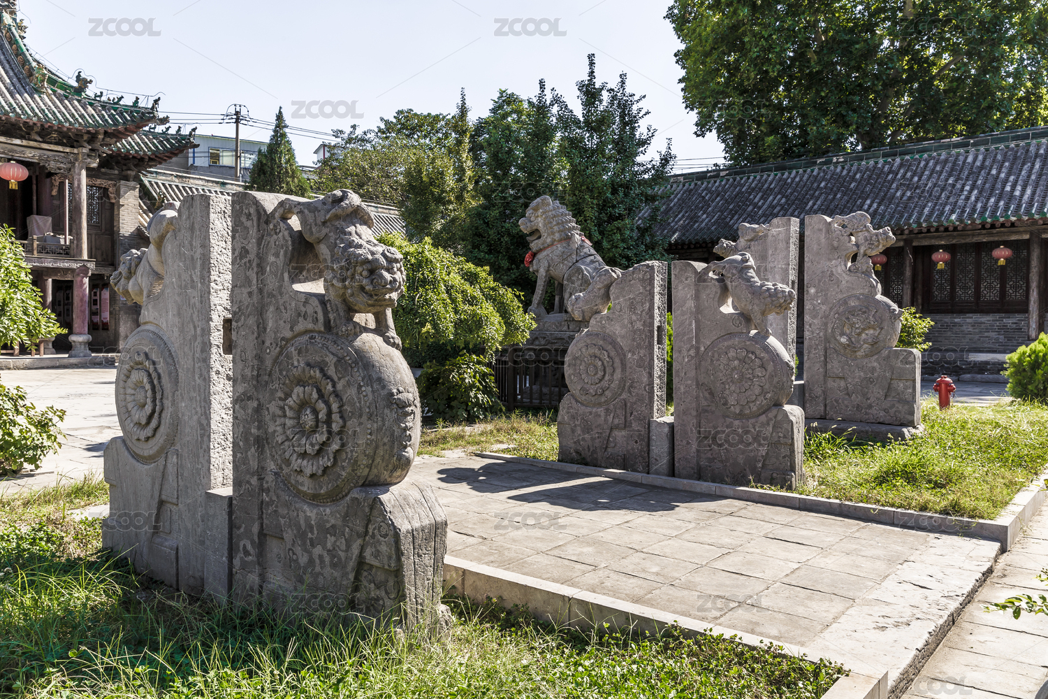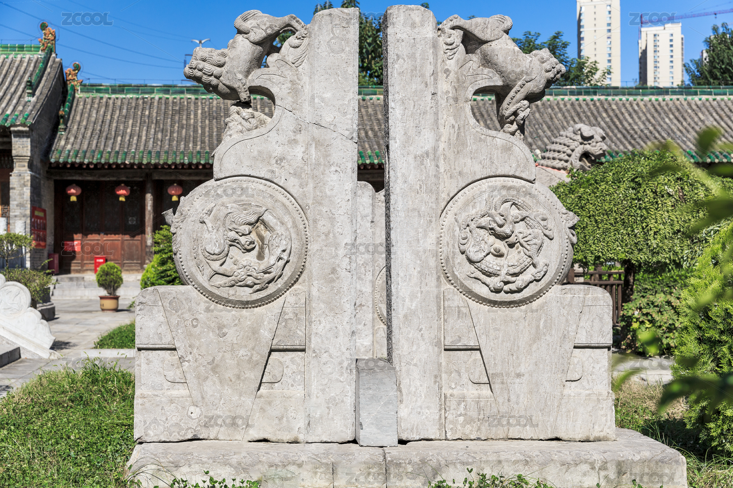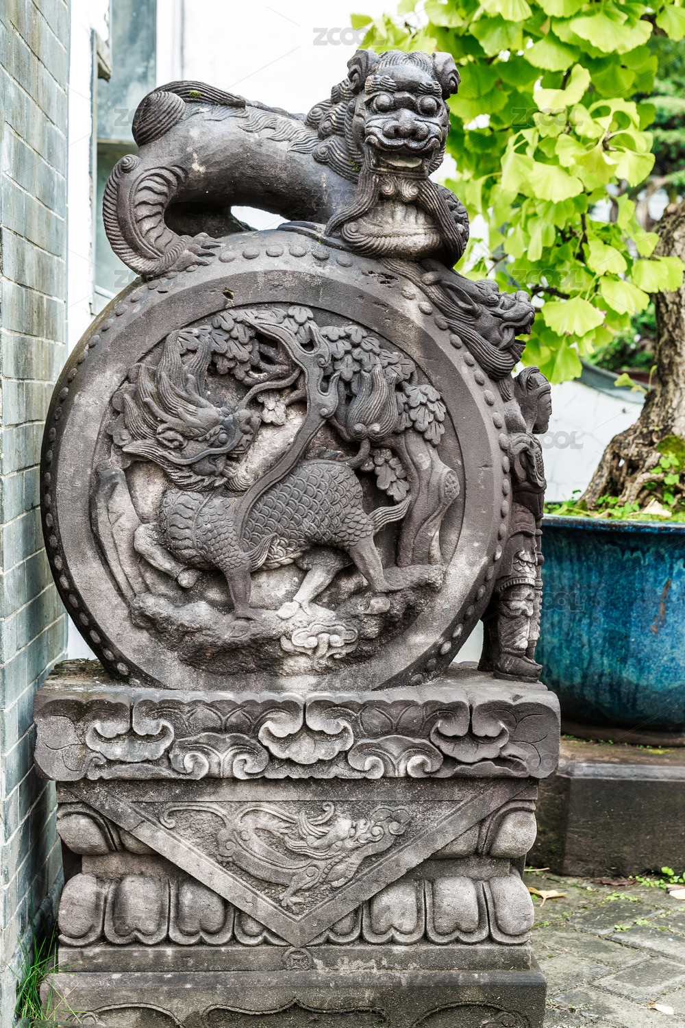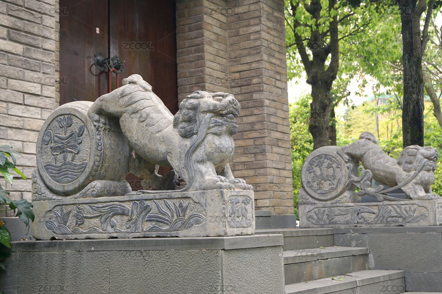 中式古典建筑門外的抱鼓石