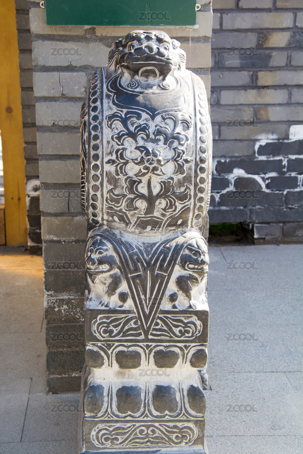中式民居宅門石獅抱鼓石