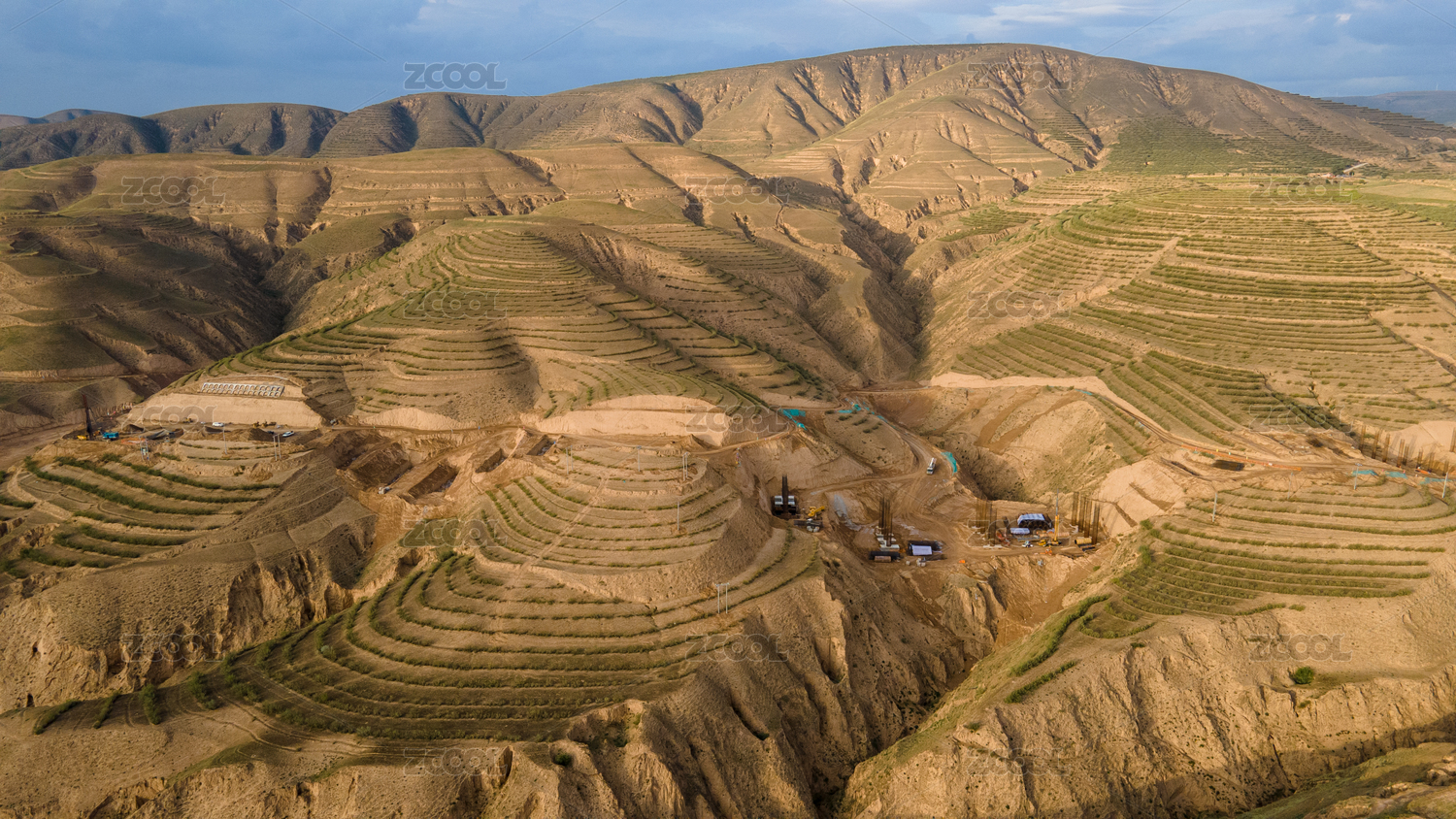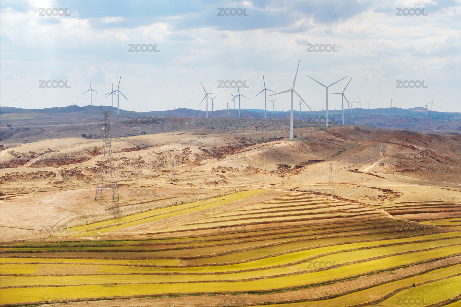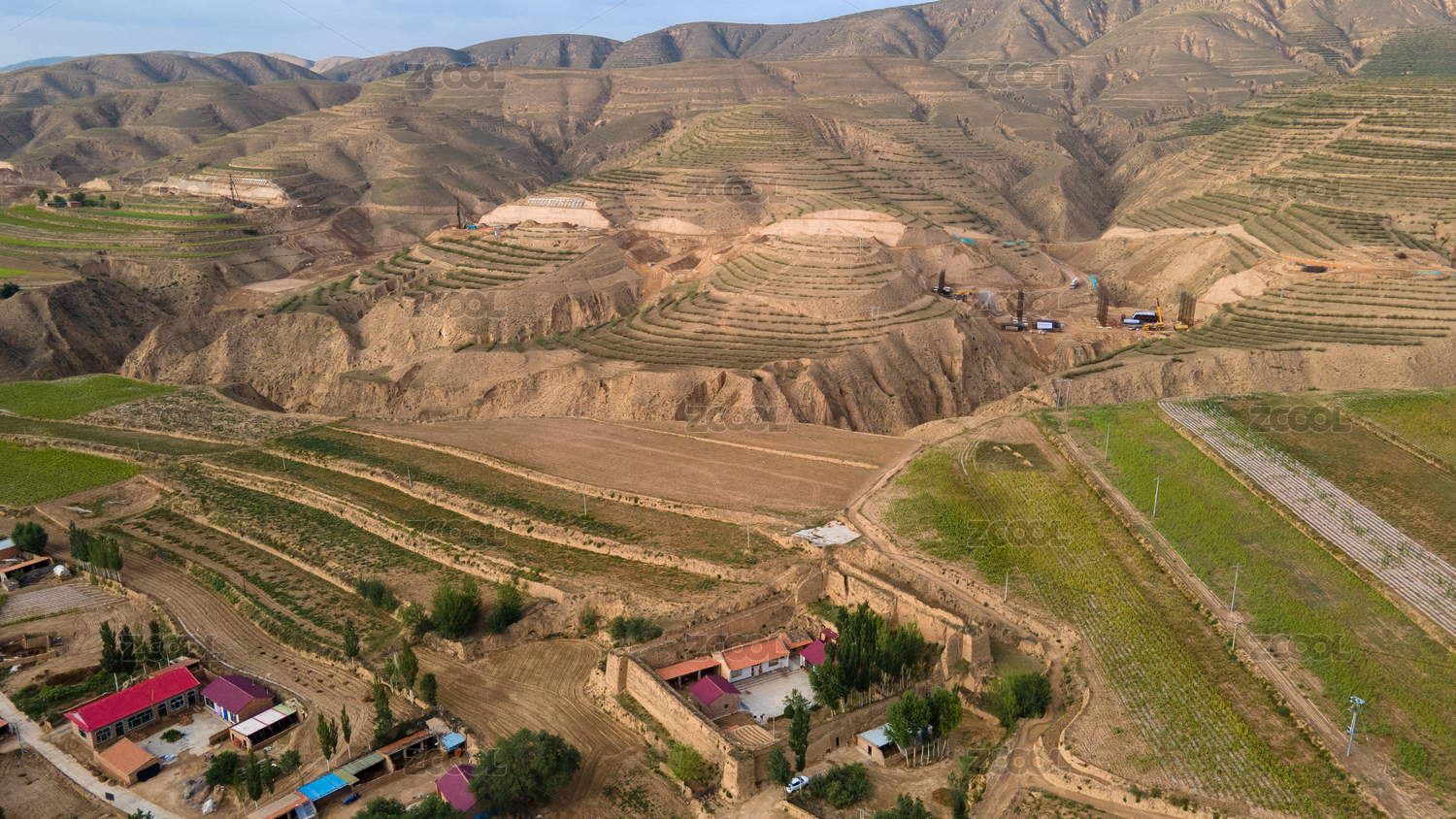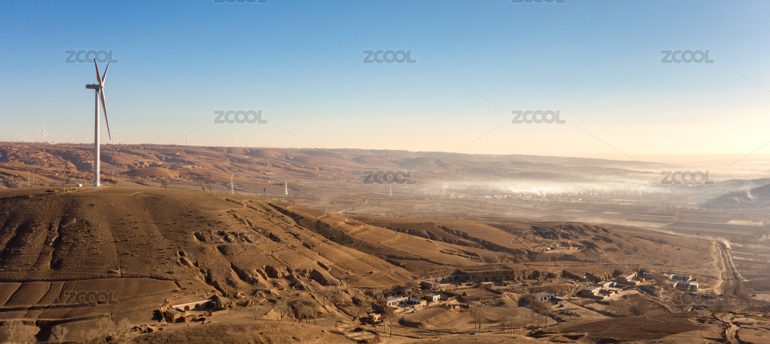 黃土高原上的梯田和風(fēng)力發(fā)電機(jī)