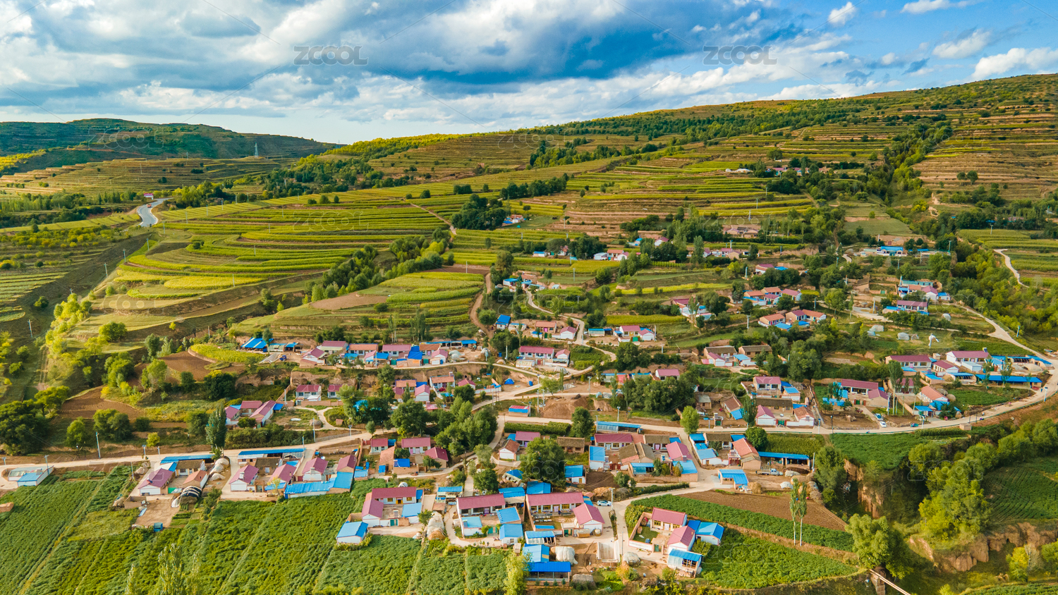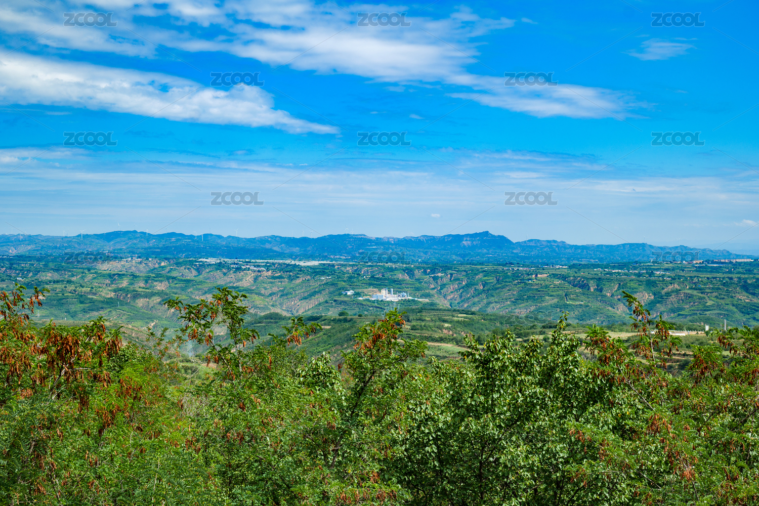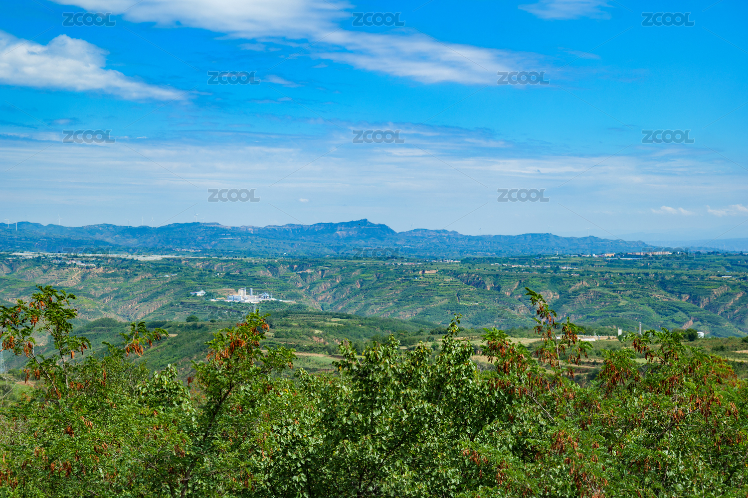 黃土高原上的梯田和風(fēng)力發(fā)電機(jī)
