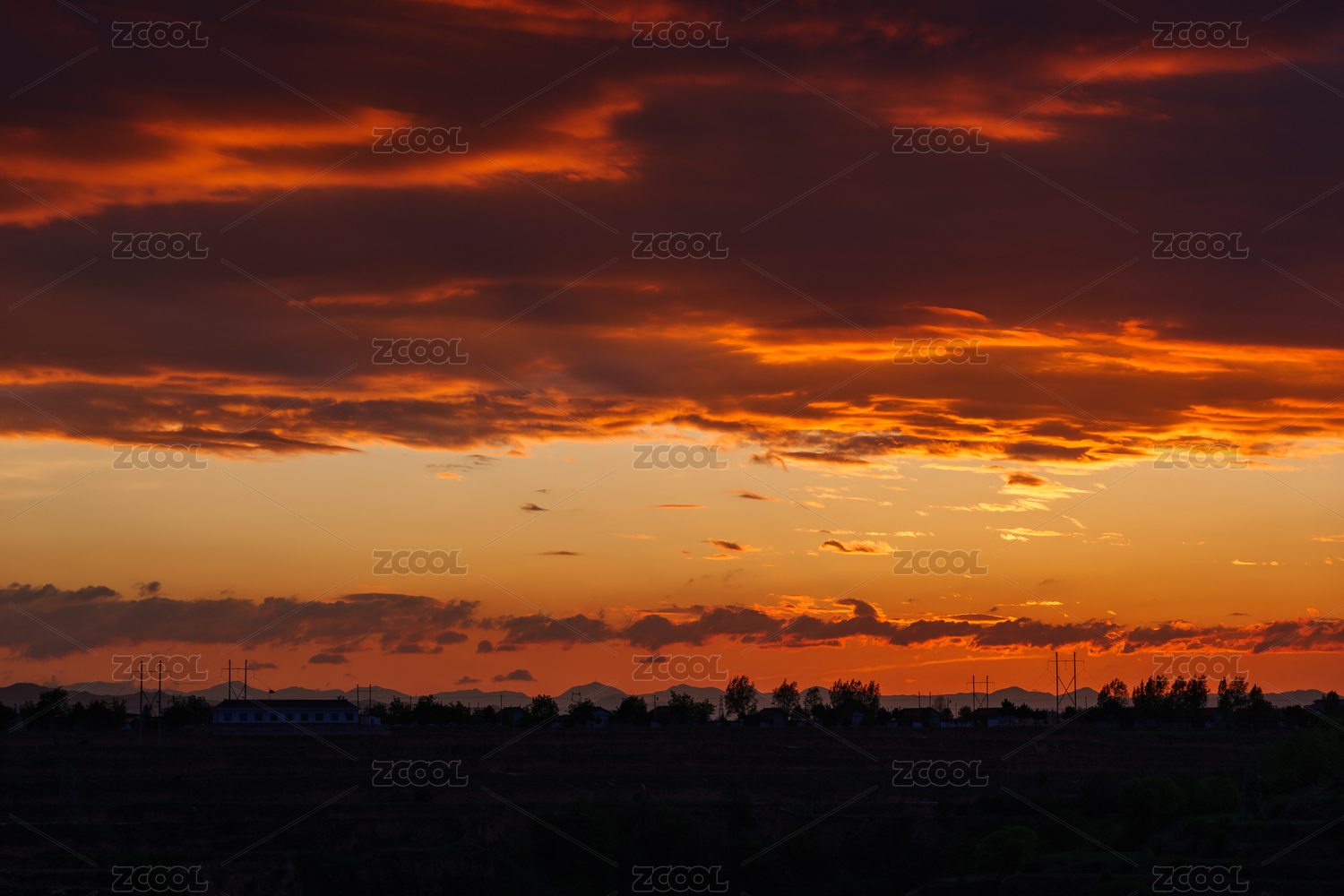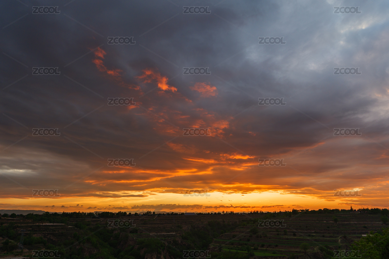 黃土高原鄉(xiāng)村日落戲劇性的天空晚霞云景