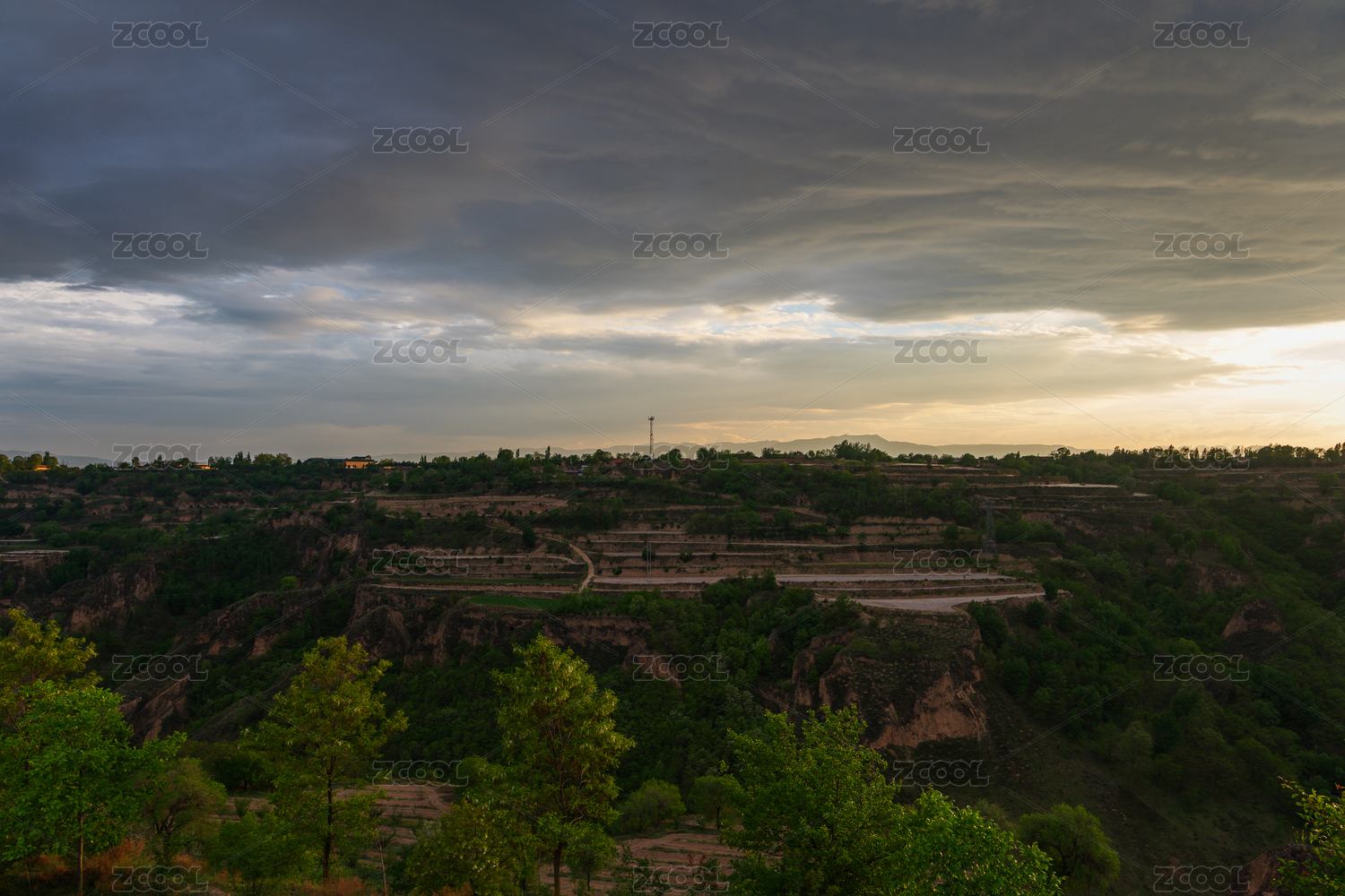 傍晚的黃土高原山脈風(fēng)光