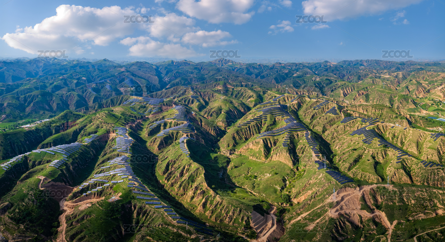 中國陜西榆林子洲黃土高原太陽能光伏風(fēng)景