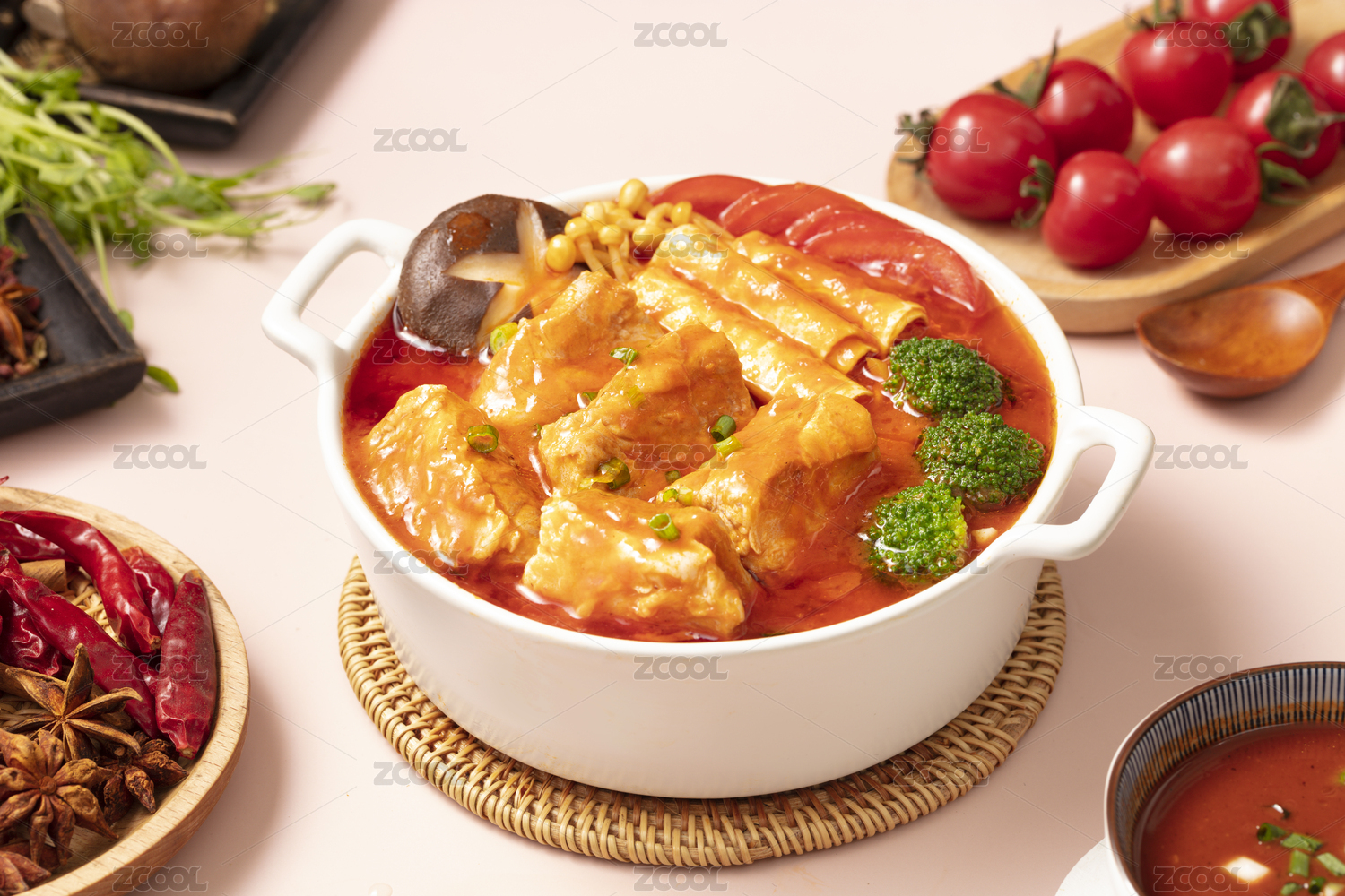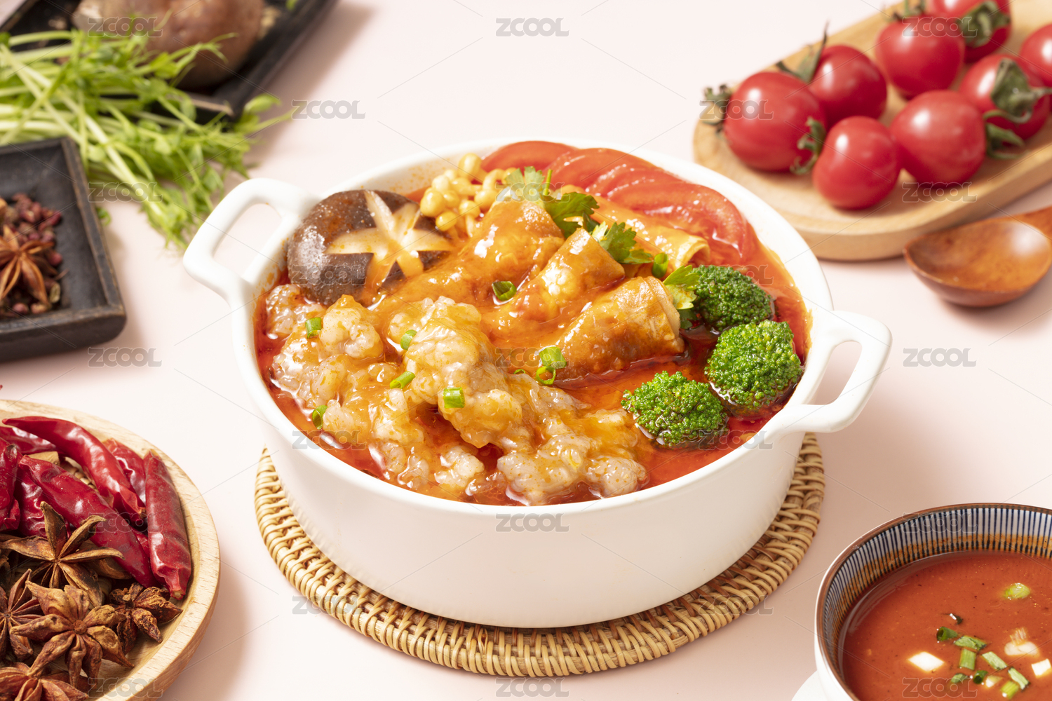 雙耳鍋里面的番茄湯鍋小火鍋