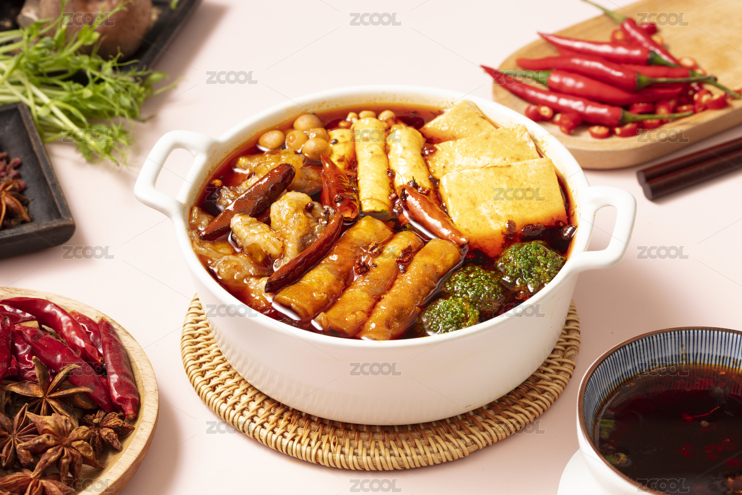 雙耳鍋里面的麻辣燙小火鍋
