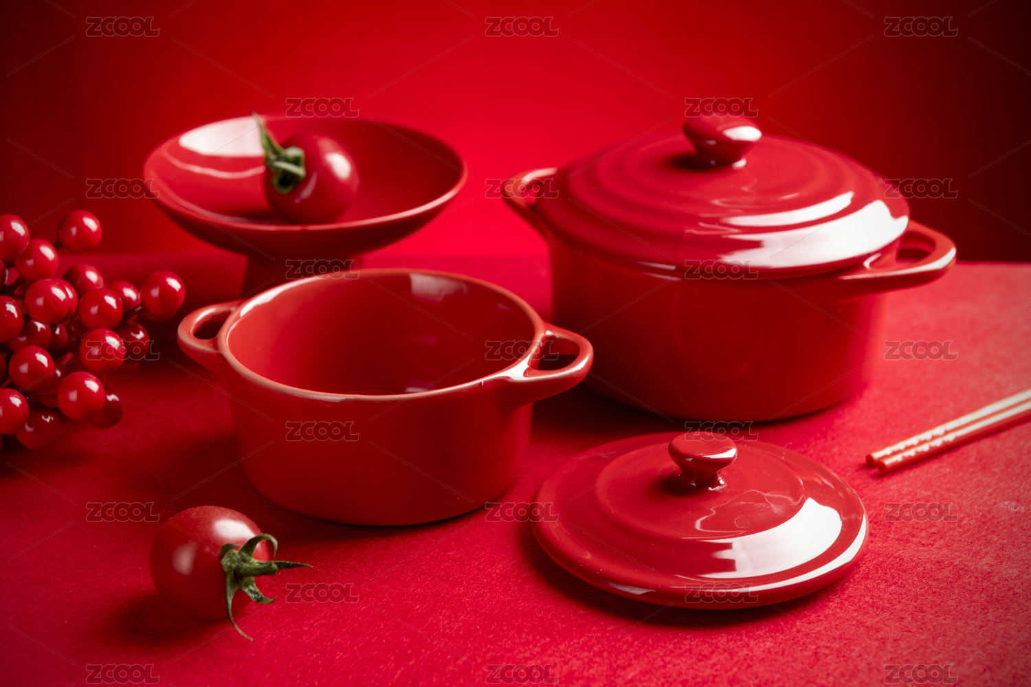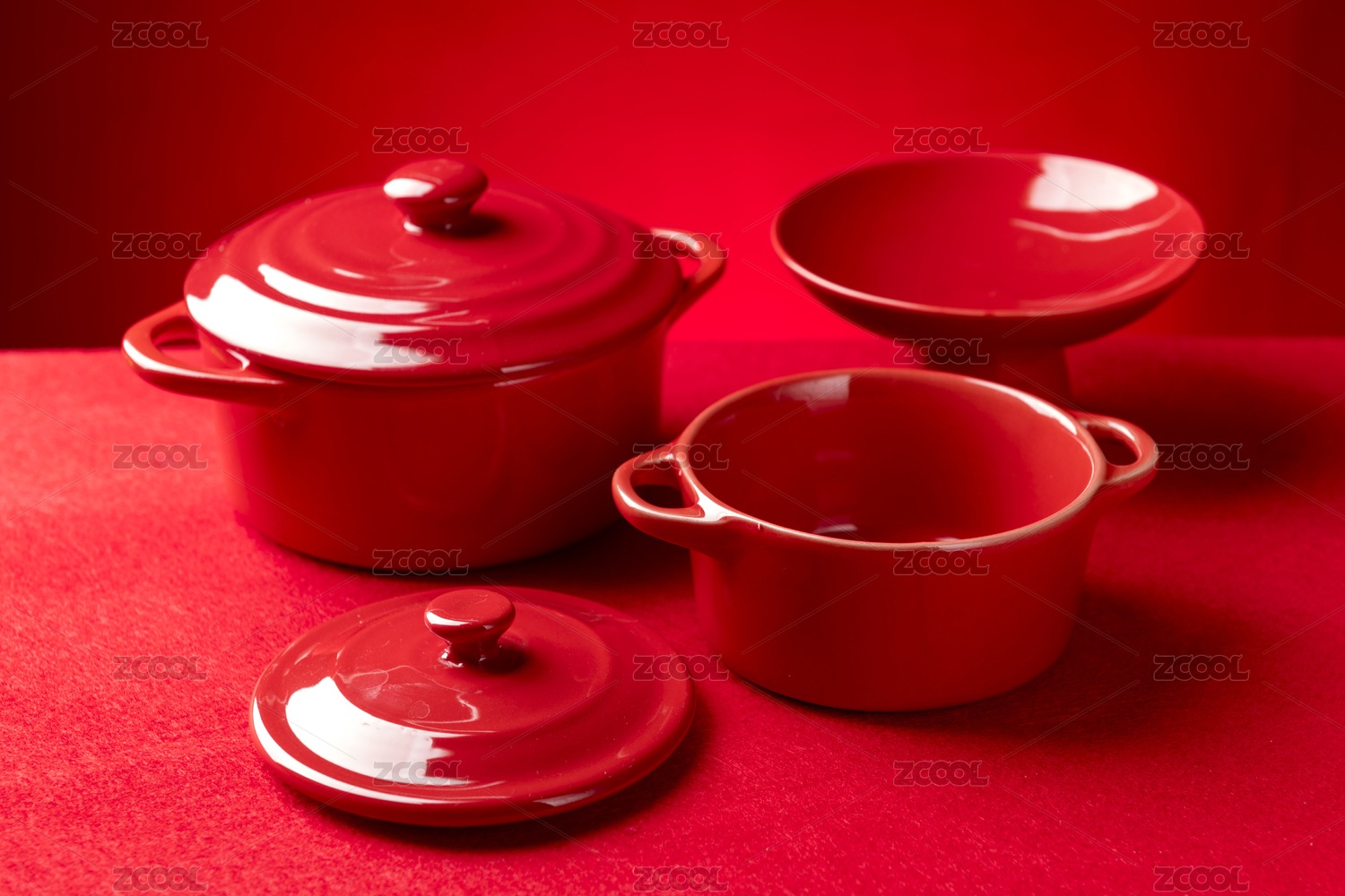 紅色餐具雙耳帶蓋蒸蛋碗特寫