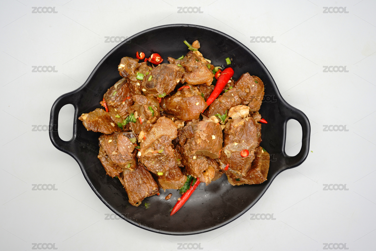 裝在雙耳鍋里的餐飲美食紅燒牛肉