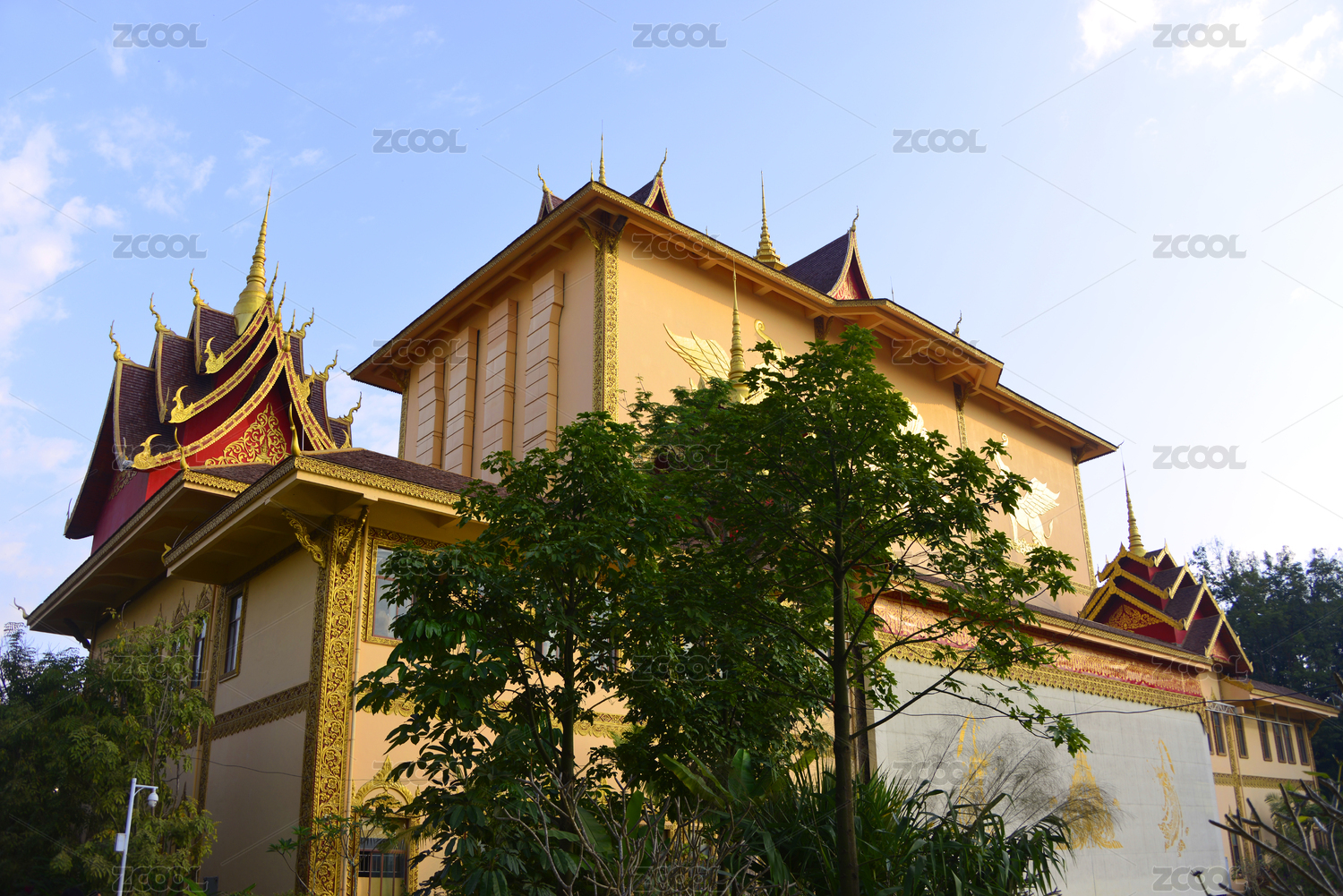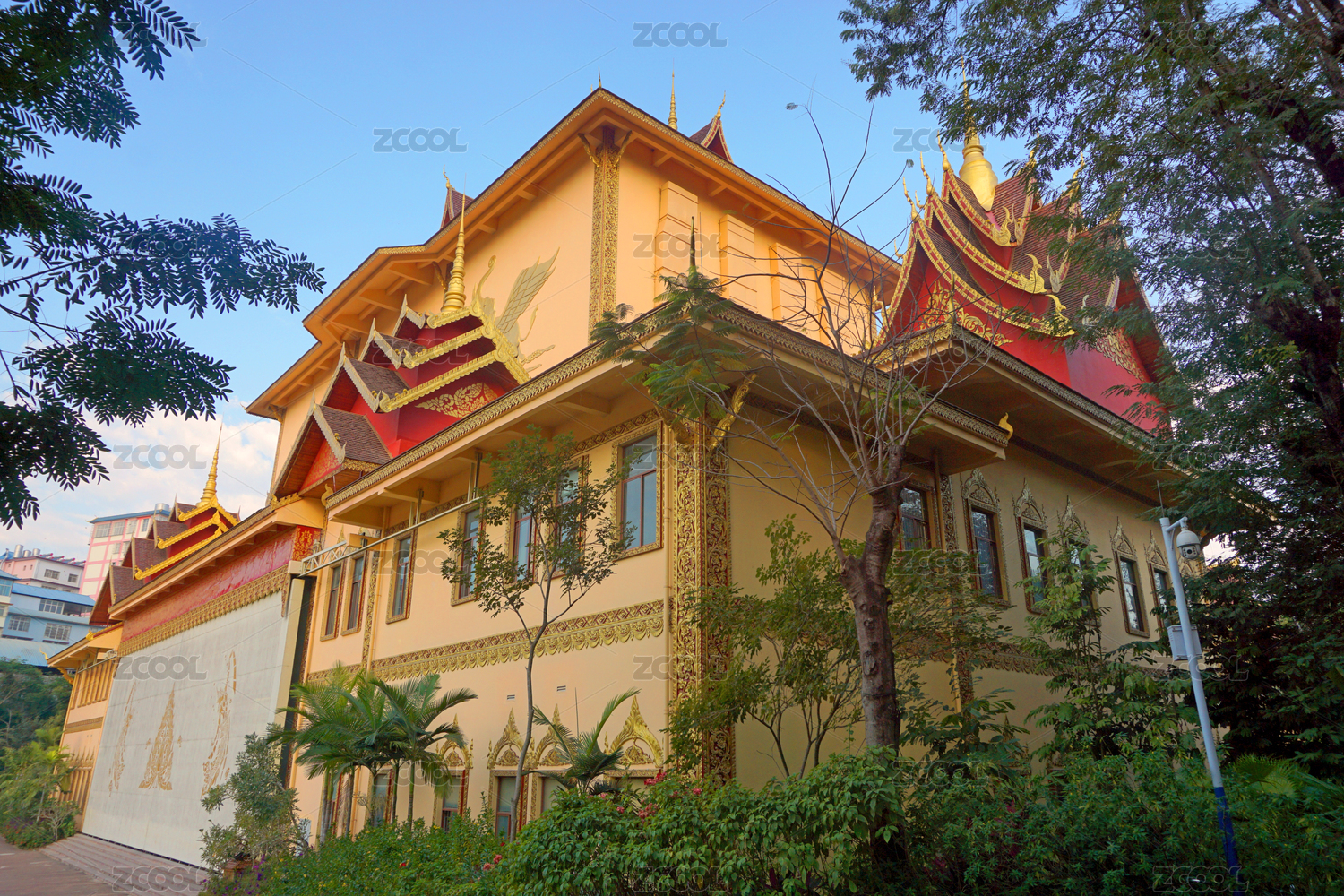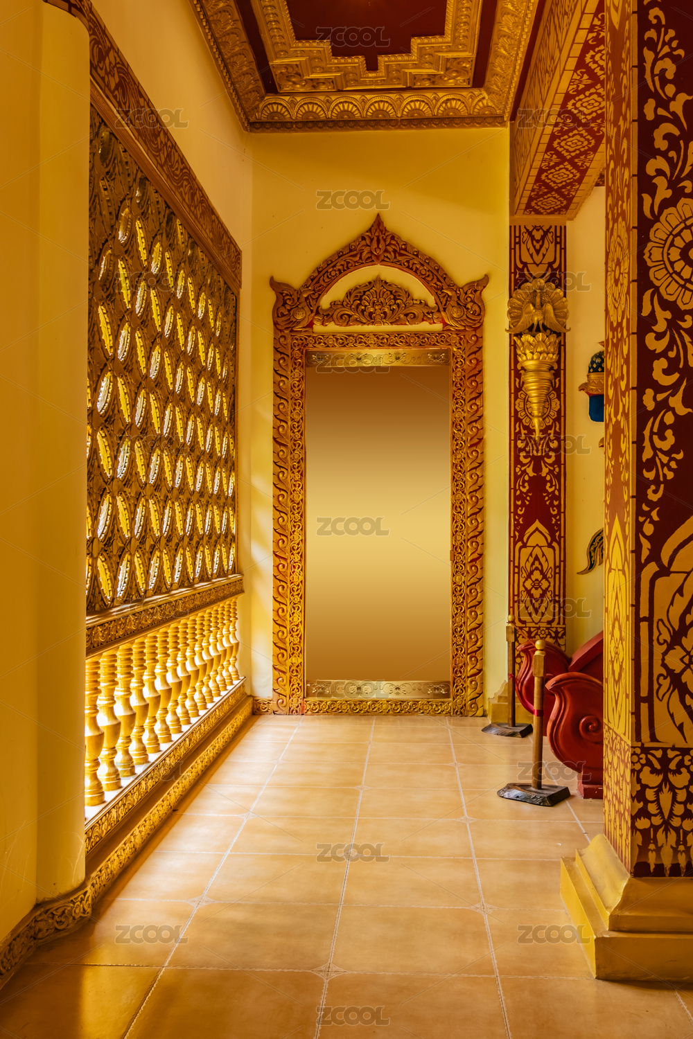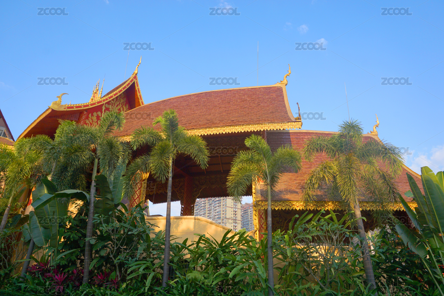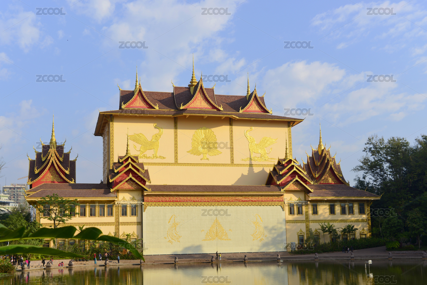 中國云南省景洪市曼聽公園傣王宮殿室內(nèi)裝飾建筑