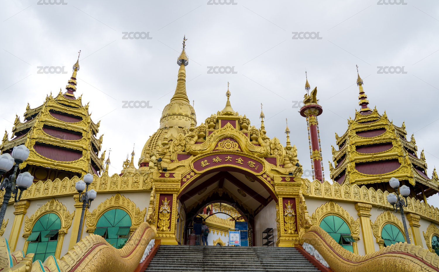 金壁輝煌的云南德宏州芒市大金塔入口景觀