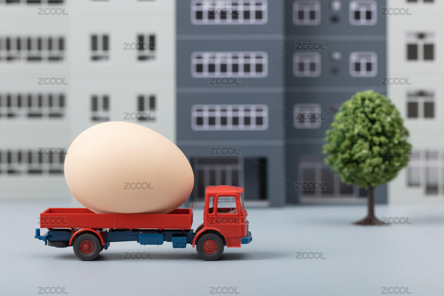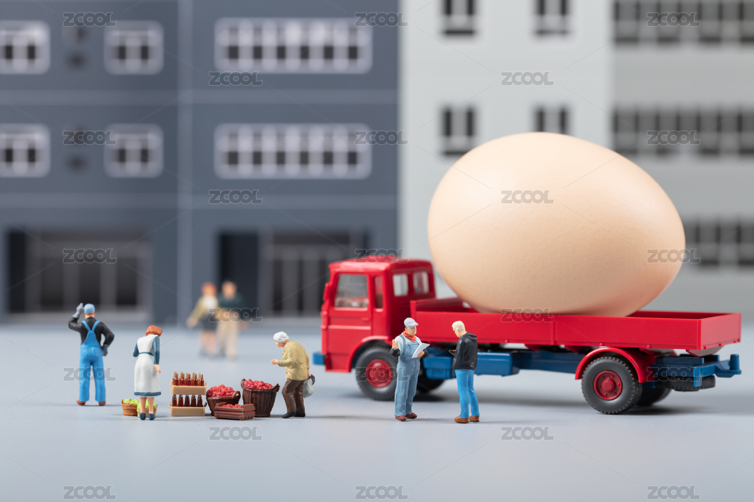 微縮創(chuàng)意生鮮到家貨車上的雞蛋和住宅區(qū)