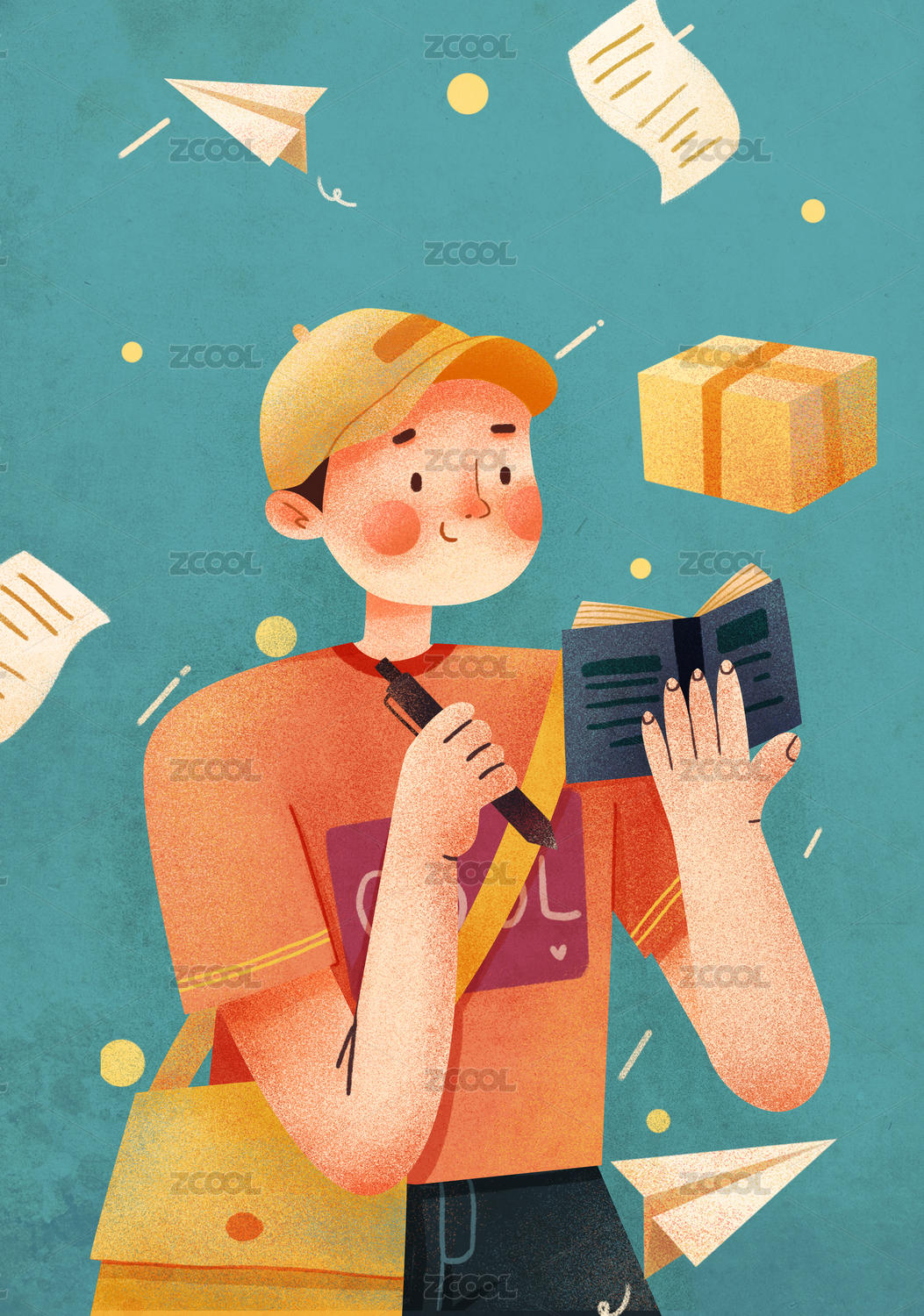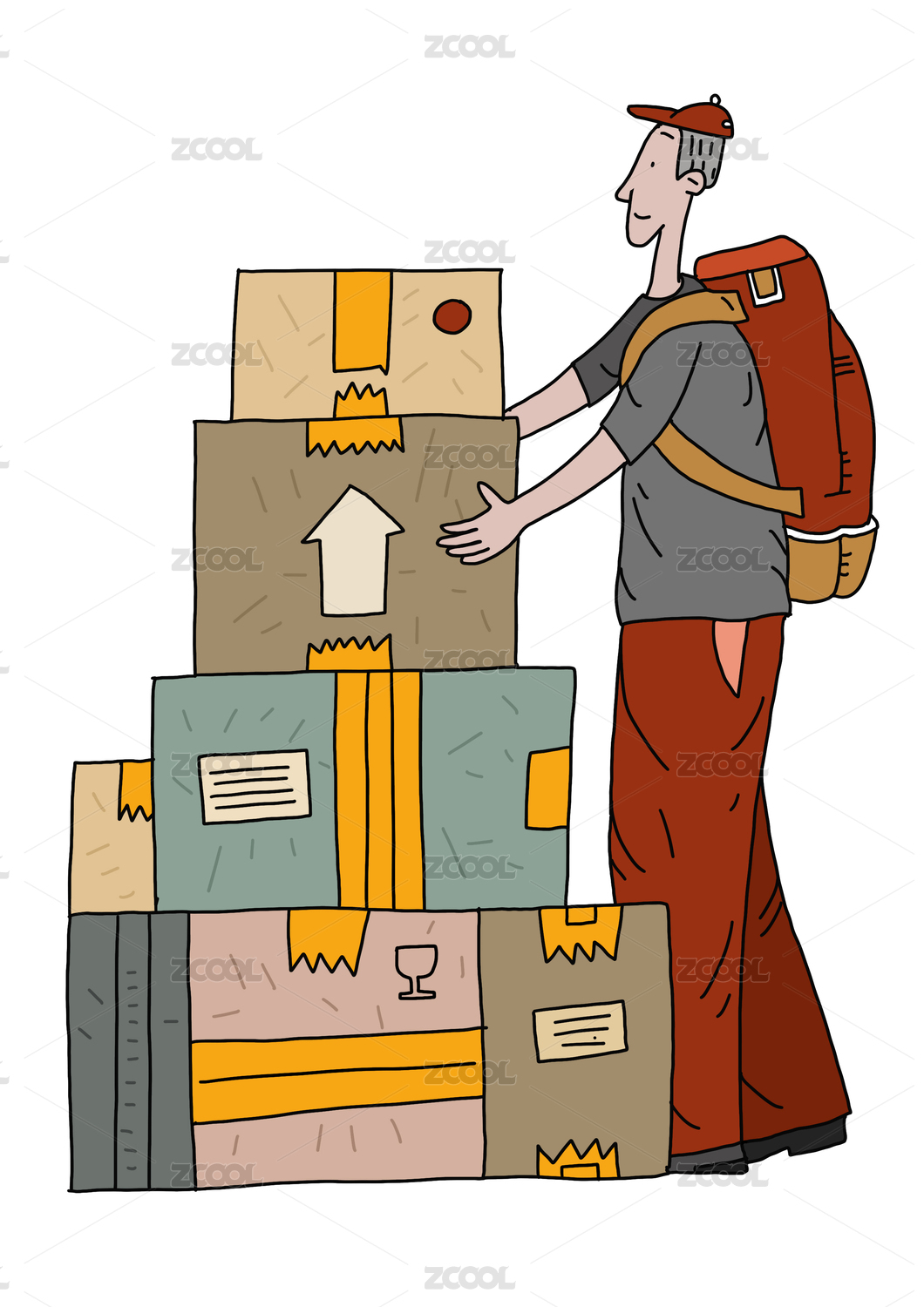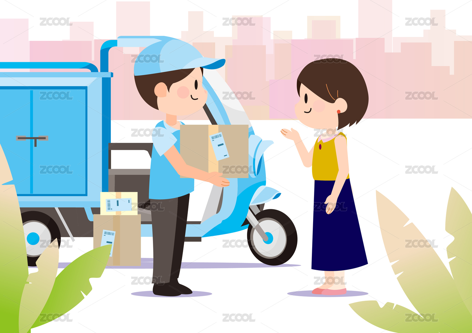 矢量電商網(wǎng)購快遞物流快遞小哥收件送快遞