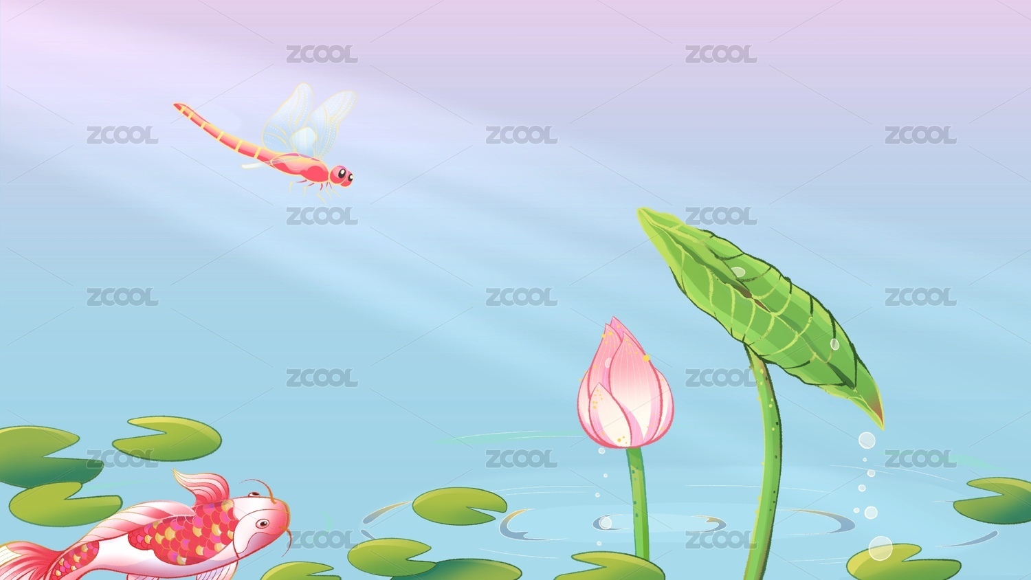 粉色背景小荷才露尖尖角荷花荷葉插畫