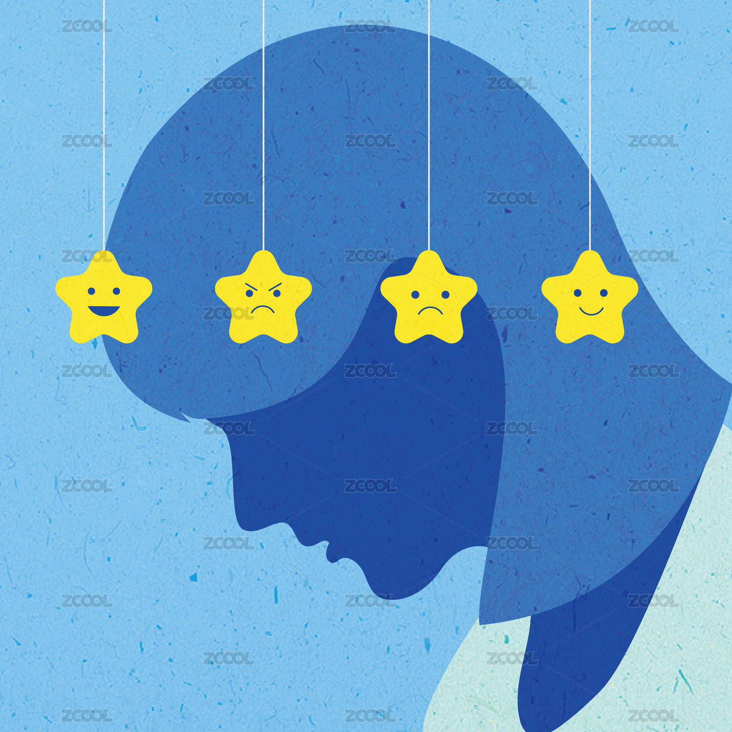 藍(lán)色背景中焦慮男士身后的黃色笑臉微縮創(chuàng)意