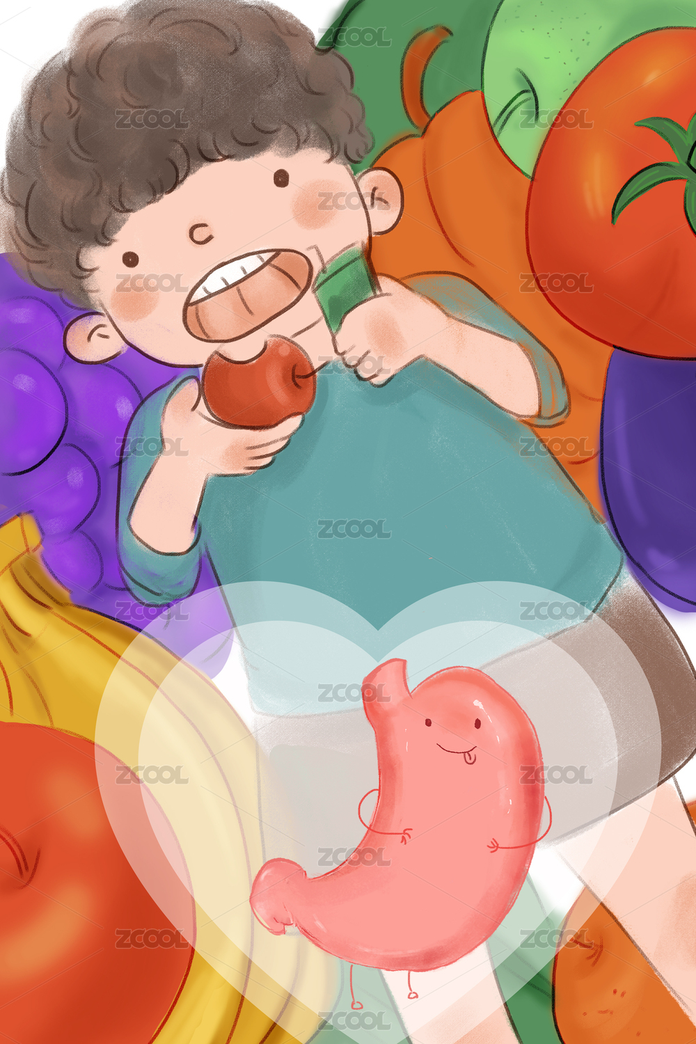 卡通手繪胃疼胃病胖子閃屏海報(bào)插畫