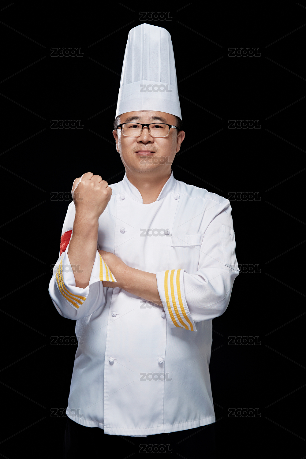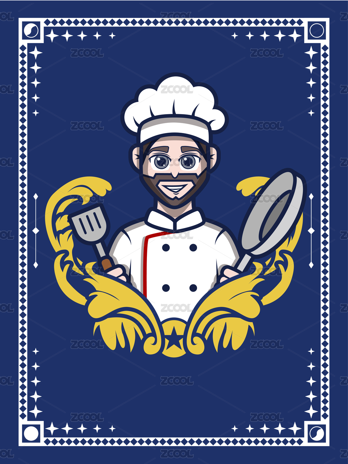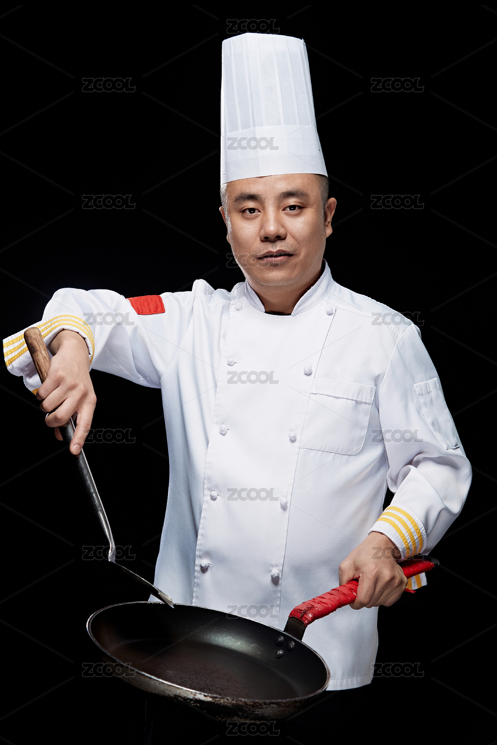 手拿鍋鏟炒鍋的酒店廚師人物形象展示