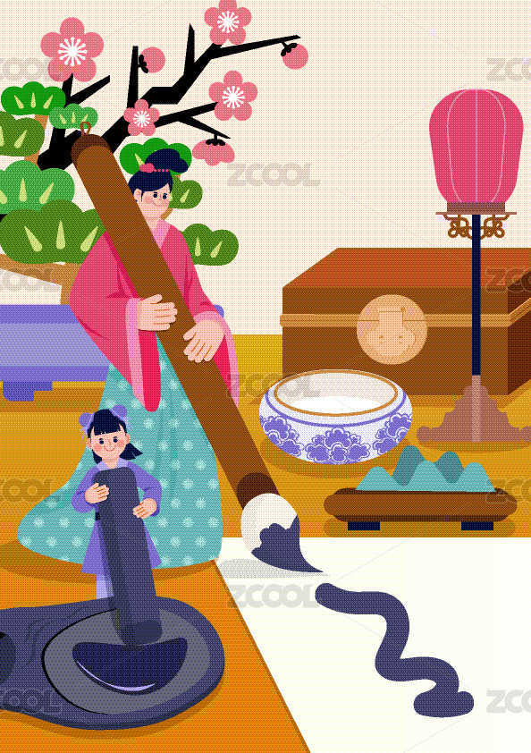 卡通手繪夫子古代人物插畫(huà)