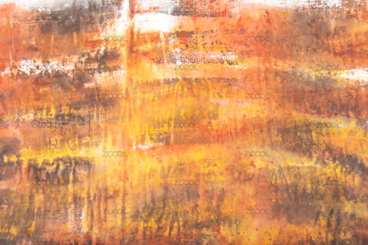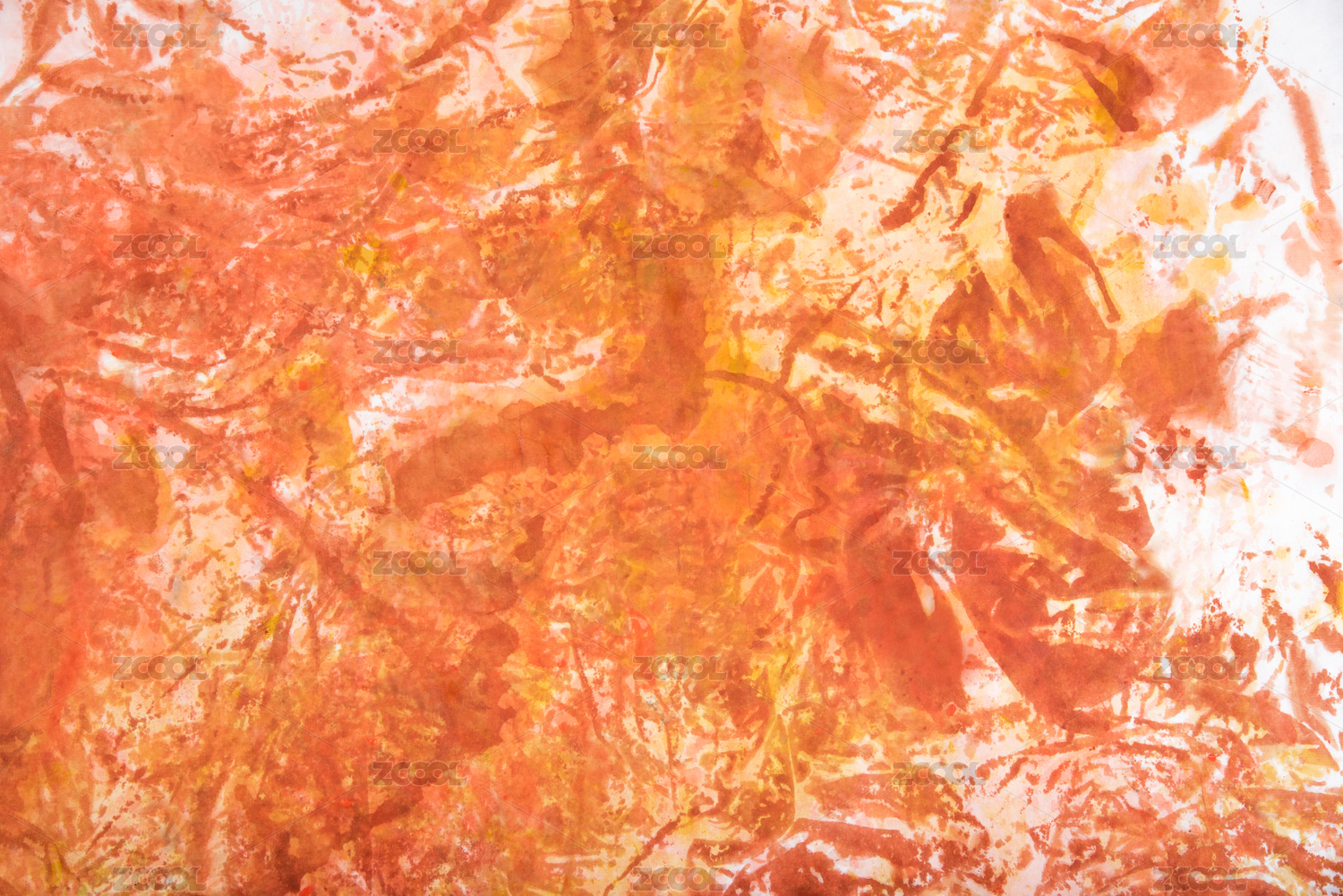 橘黃水彩顏料在宣紙上畫(huà)出來(lái)的抽象藝術(shù)紋理背景圖片