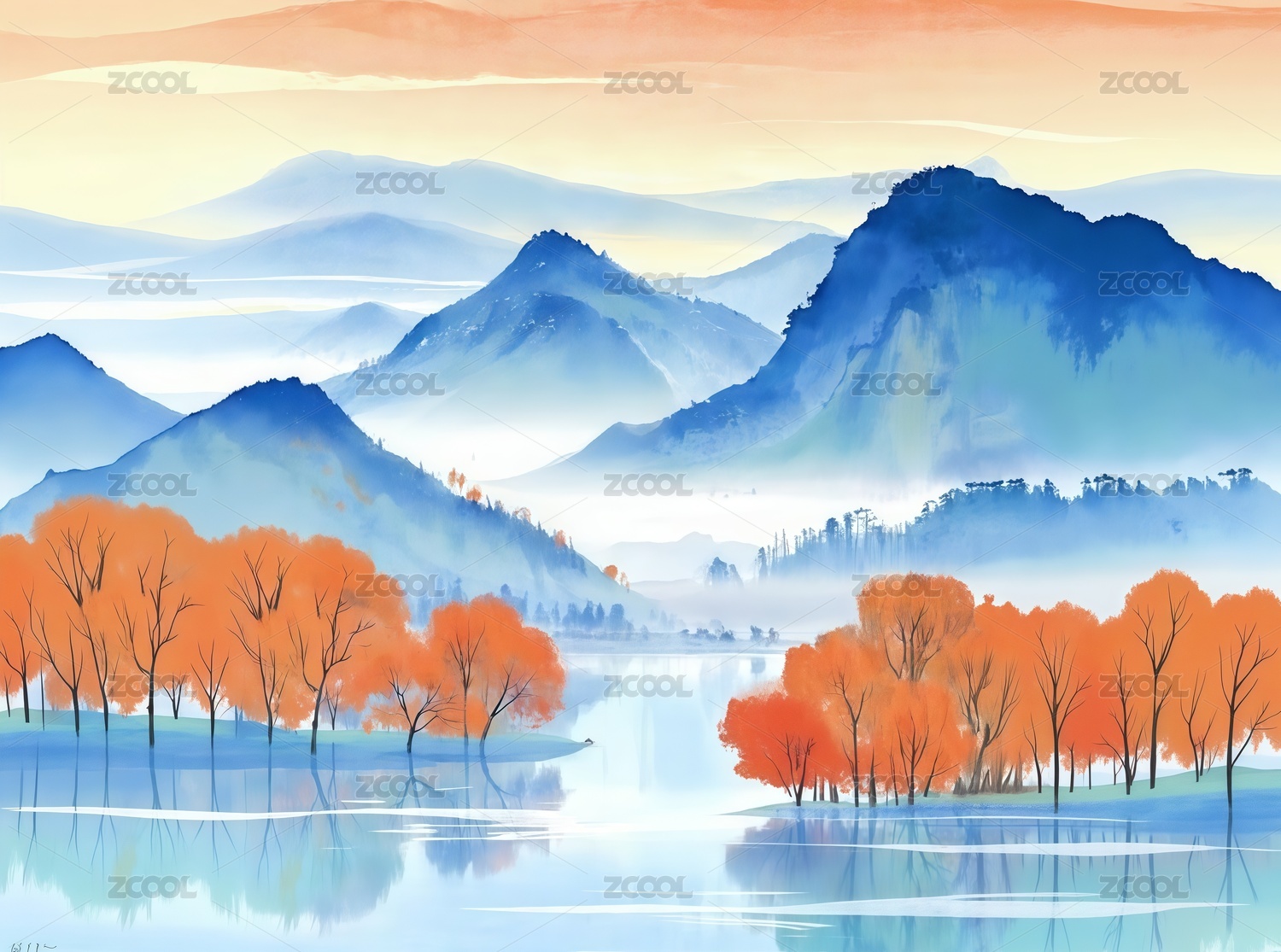 新中式禪意霜降節(jié)氣海報(bào)模版