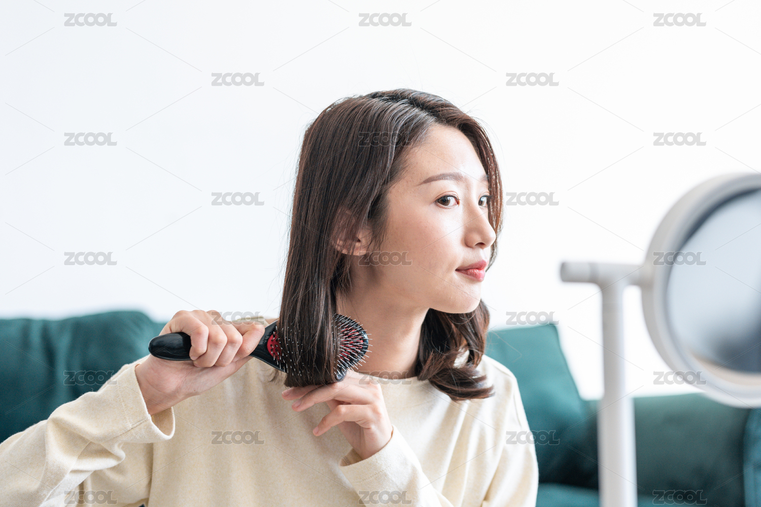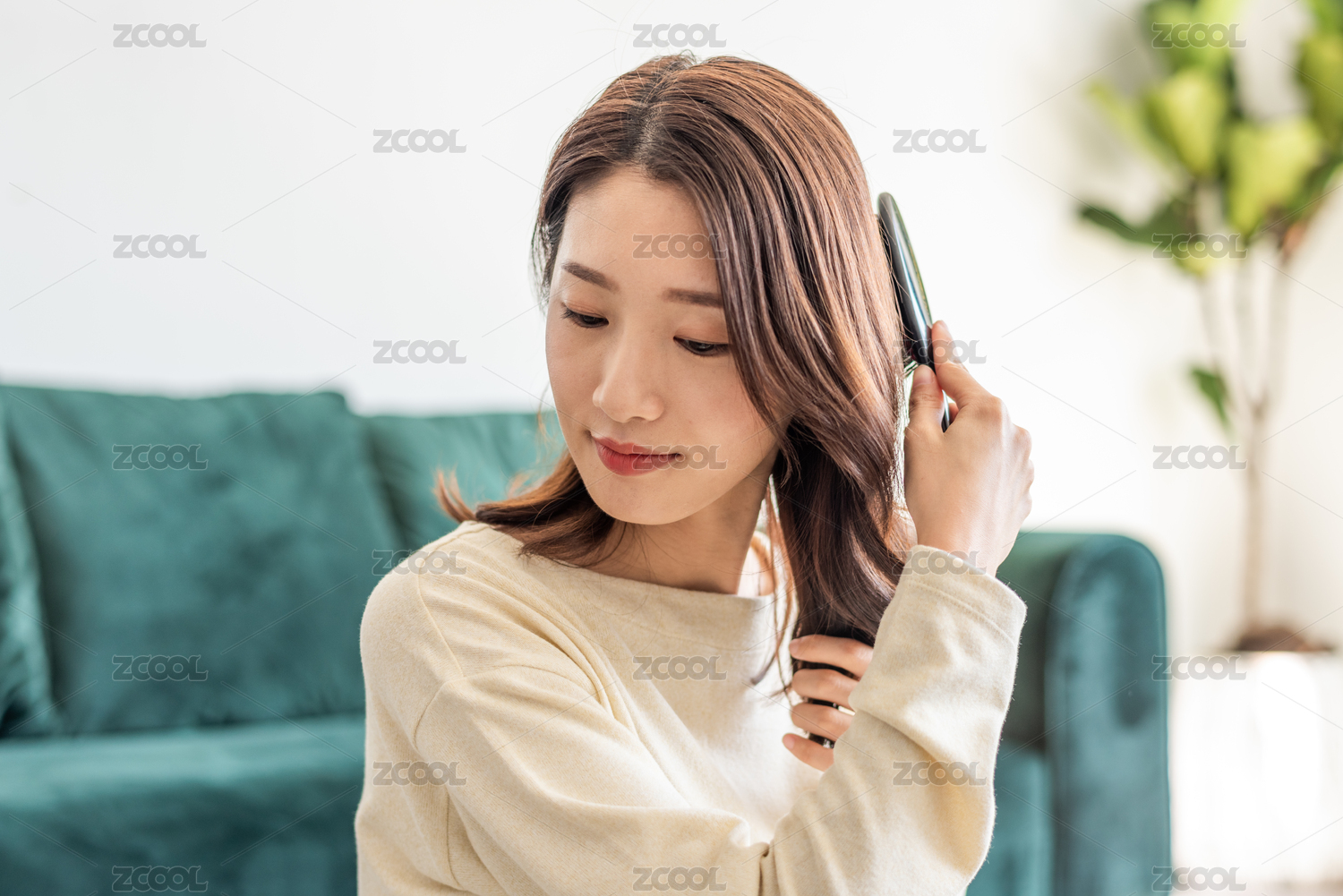 年輕女士在梳頭發(fā)