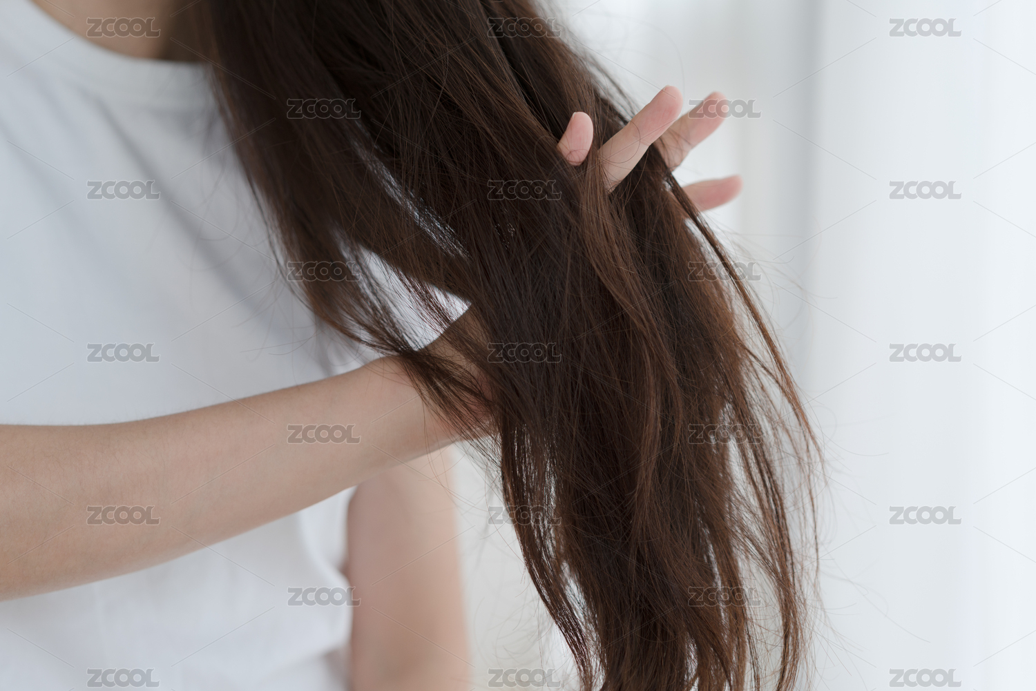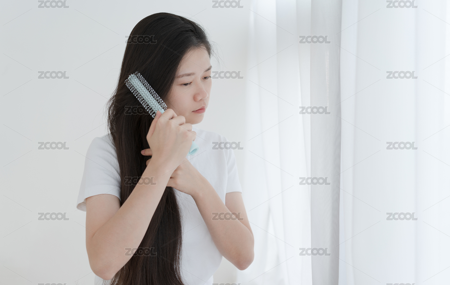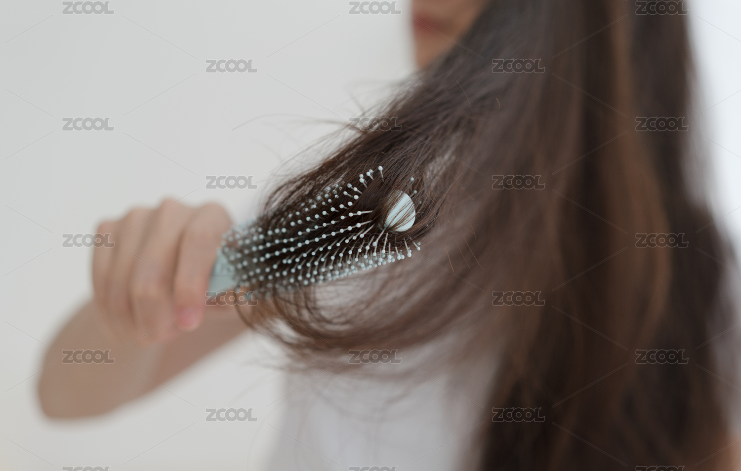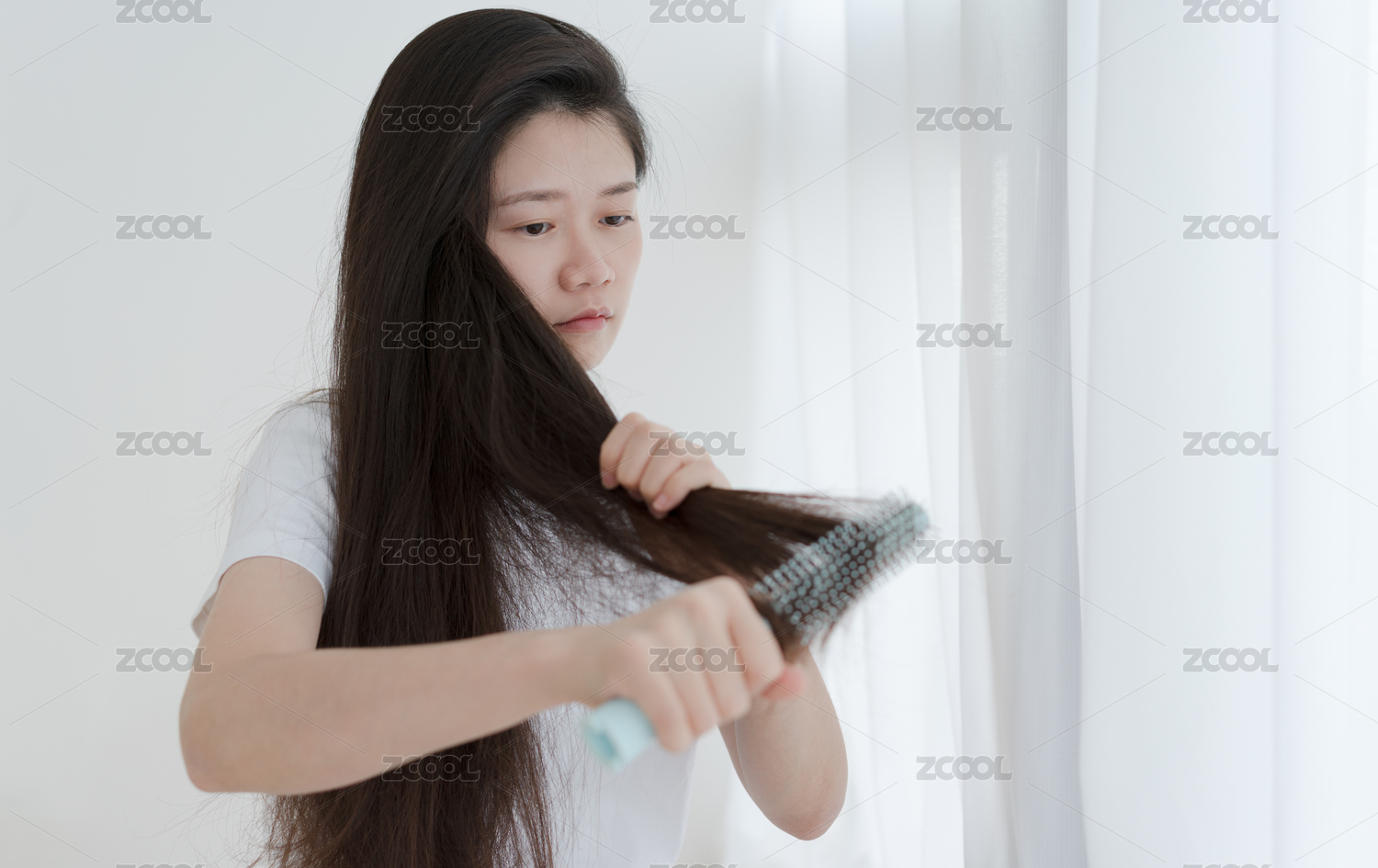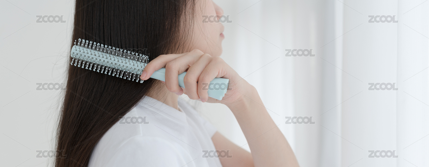 長(zhǎng)發(fā)女生手拿著梳子在梳頭發(fā)