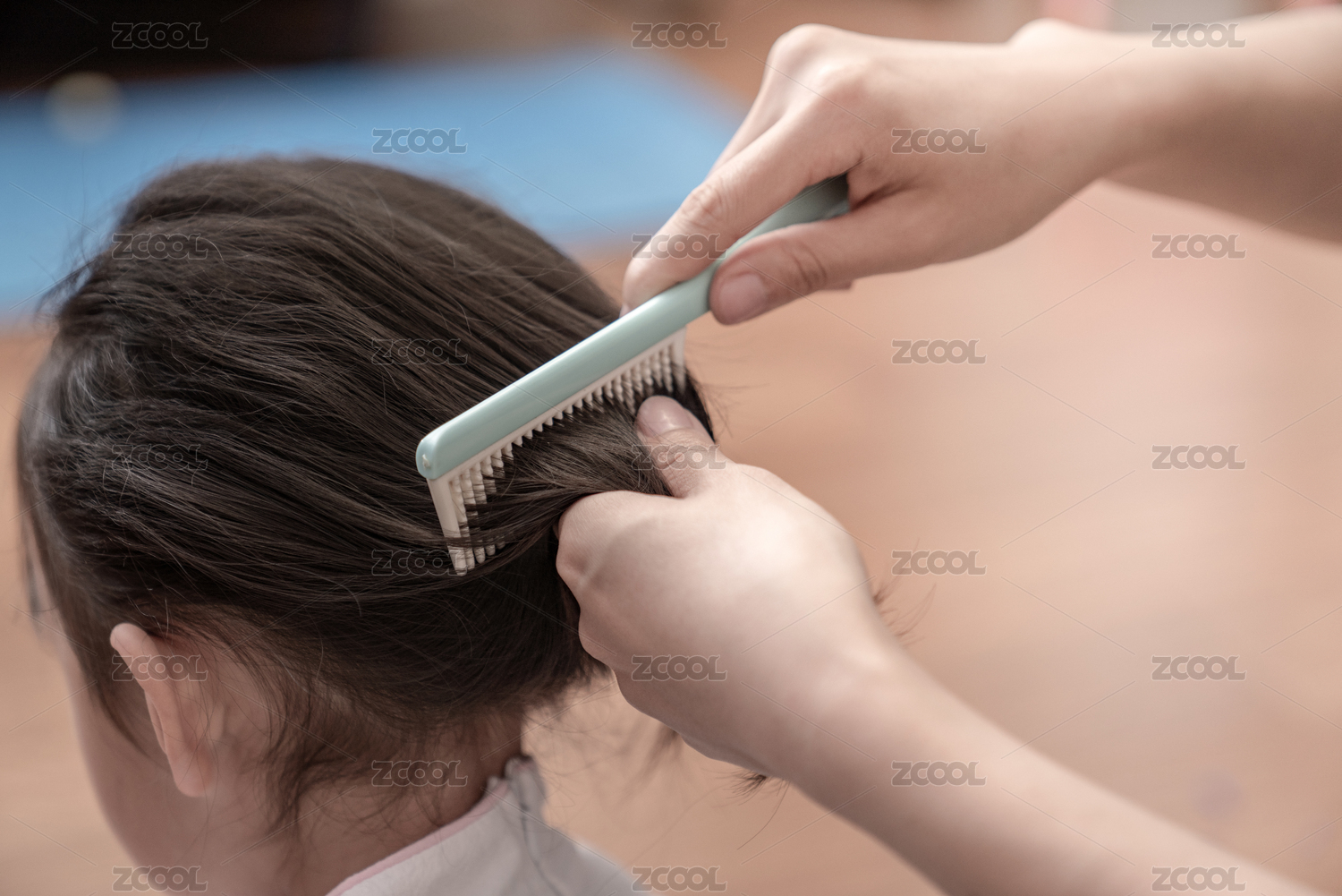 媽媽正在給女兒梳頭發(fā)