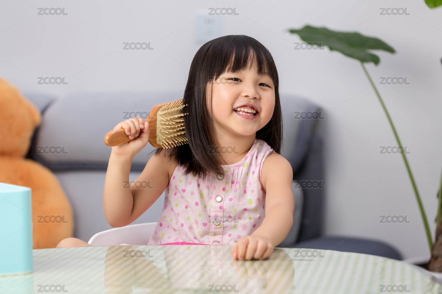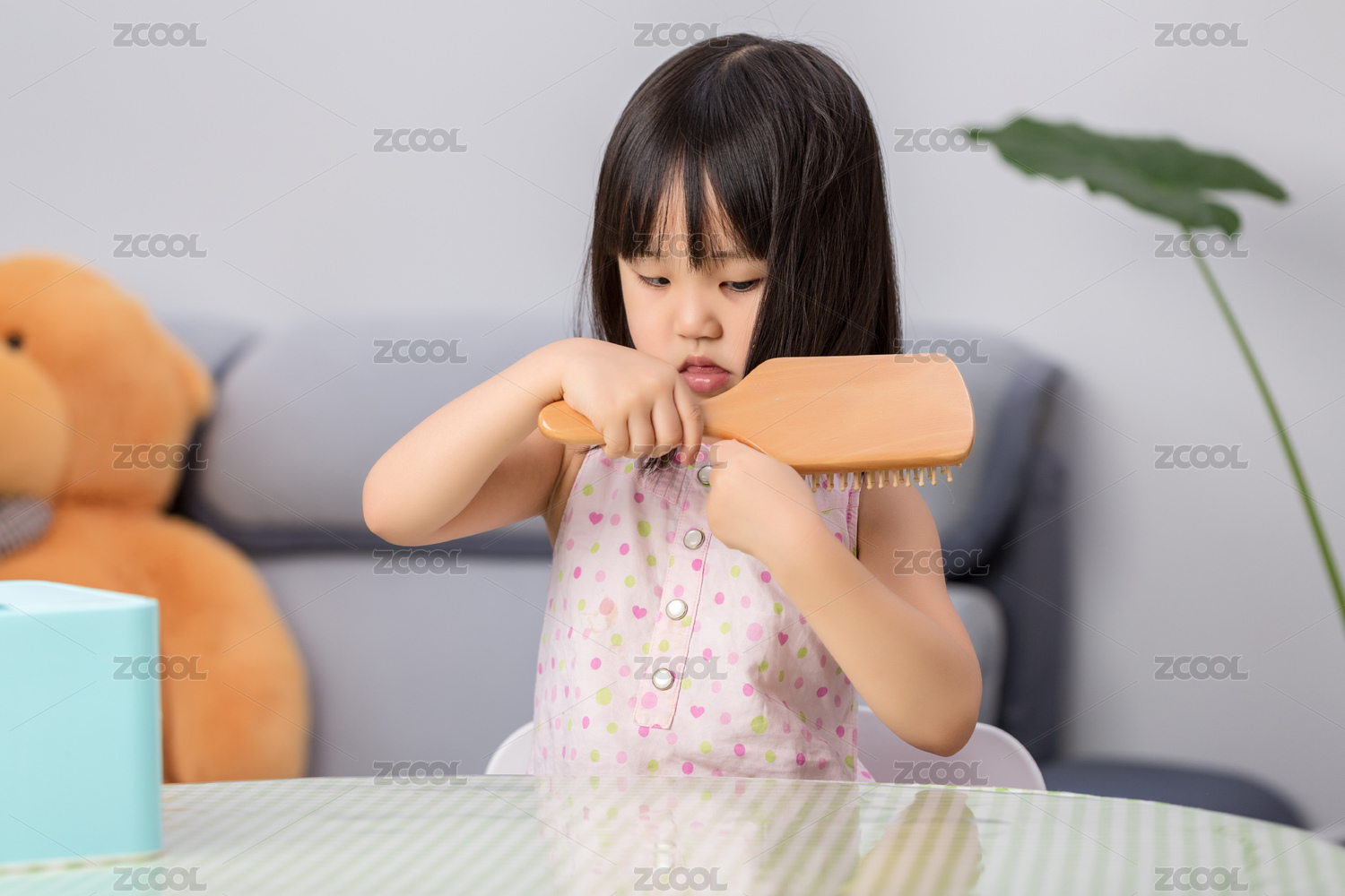 小女孩拿著梳子梳頭發(fā)