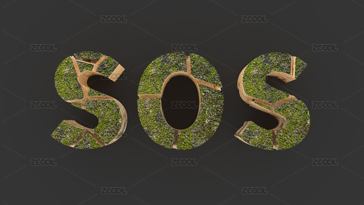 黑色背景中草坪SOS創(chuàng)意文字