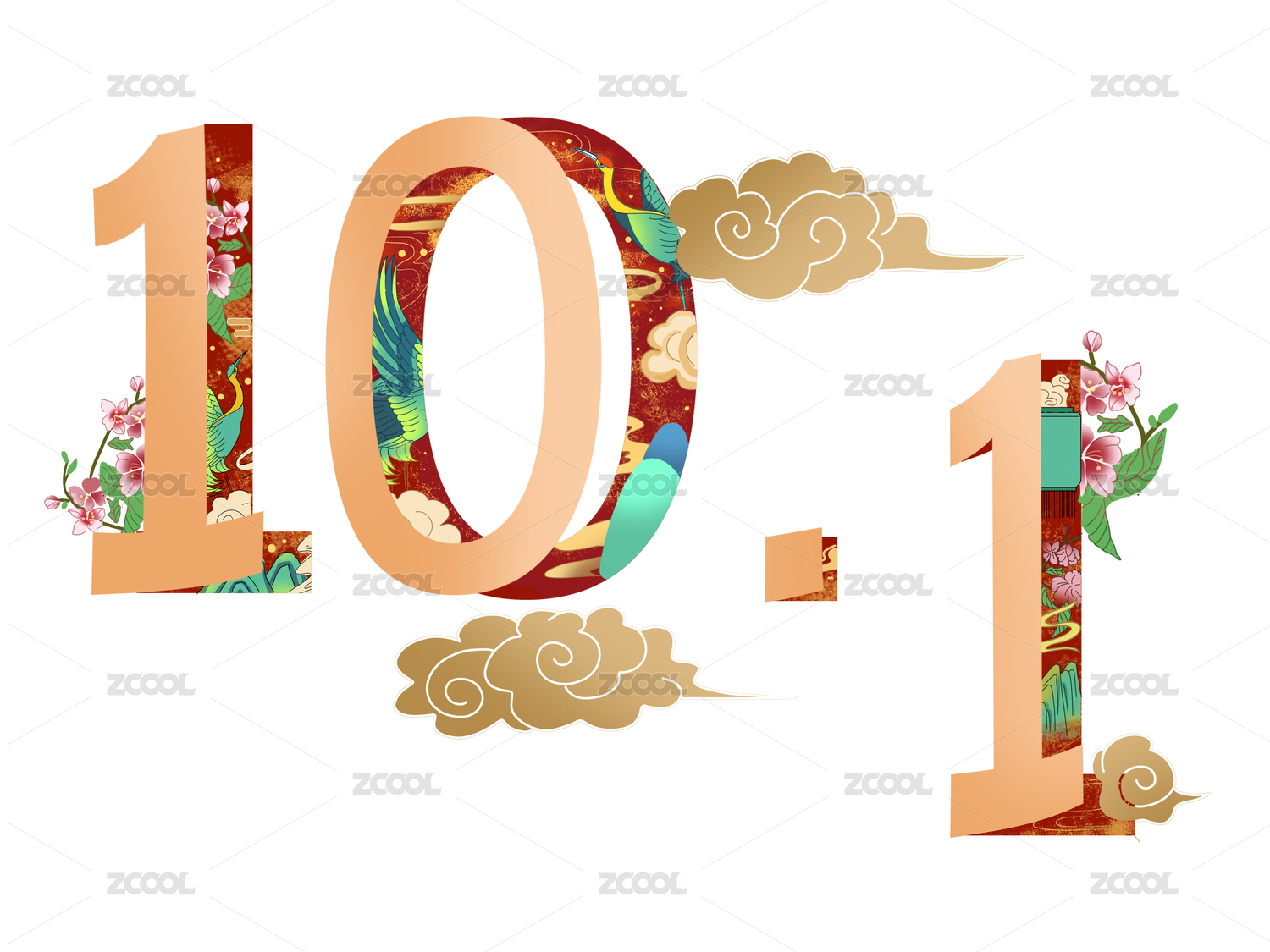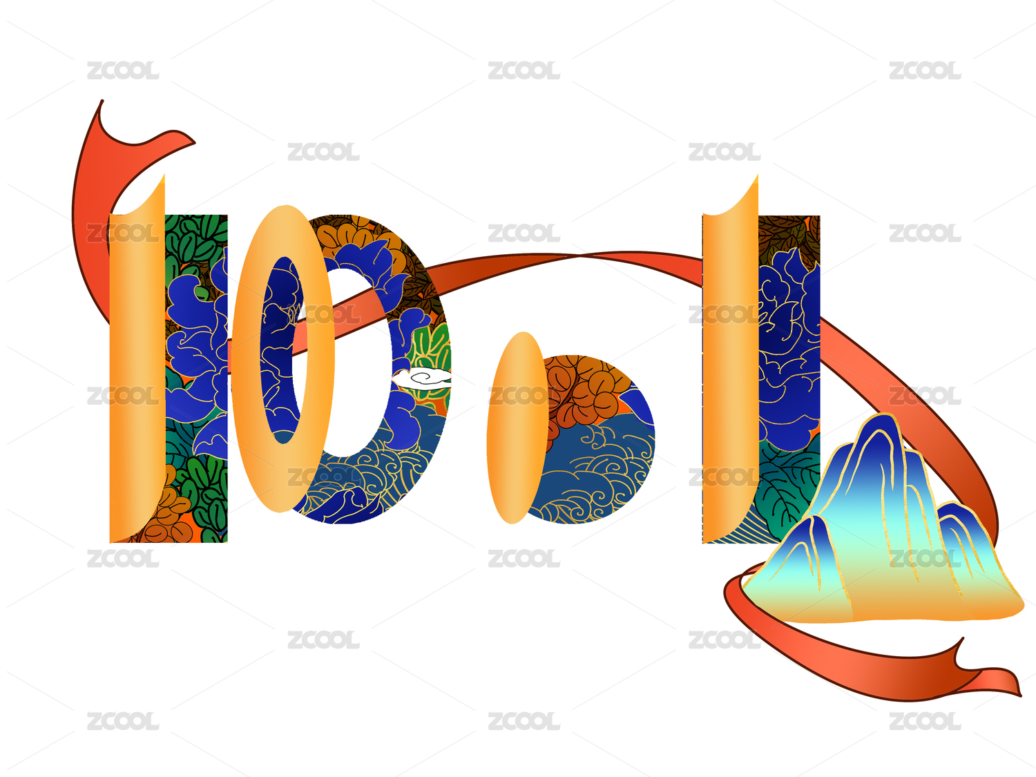 紅色國(guó)慶節(jié)10.1剪紙風(fēng)創(chuàng)意文字花祥云山元素