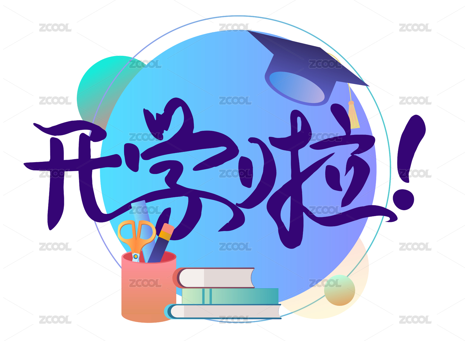 開學(xué)季創(chuàng)意文字學(xué)士帽文具矢量素材