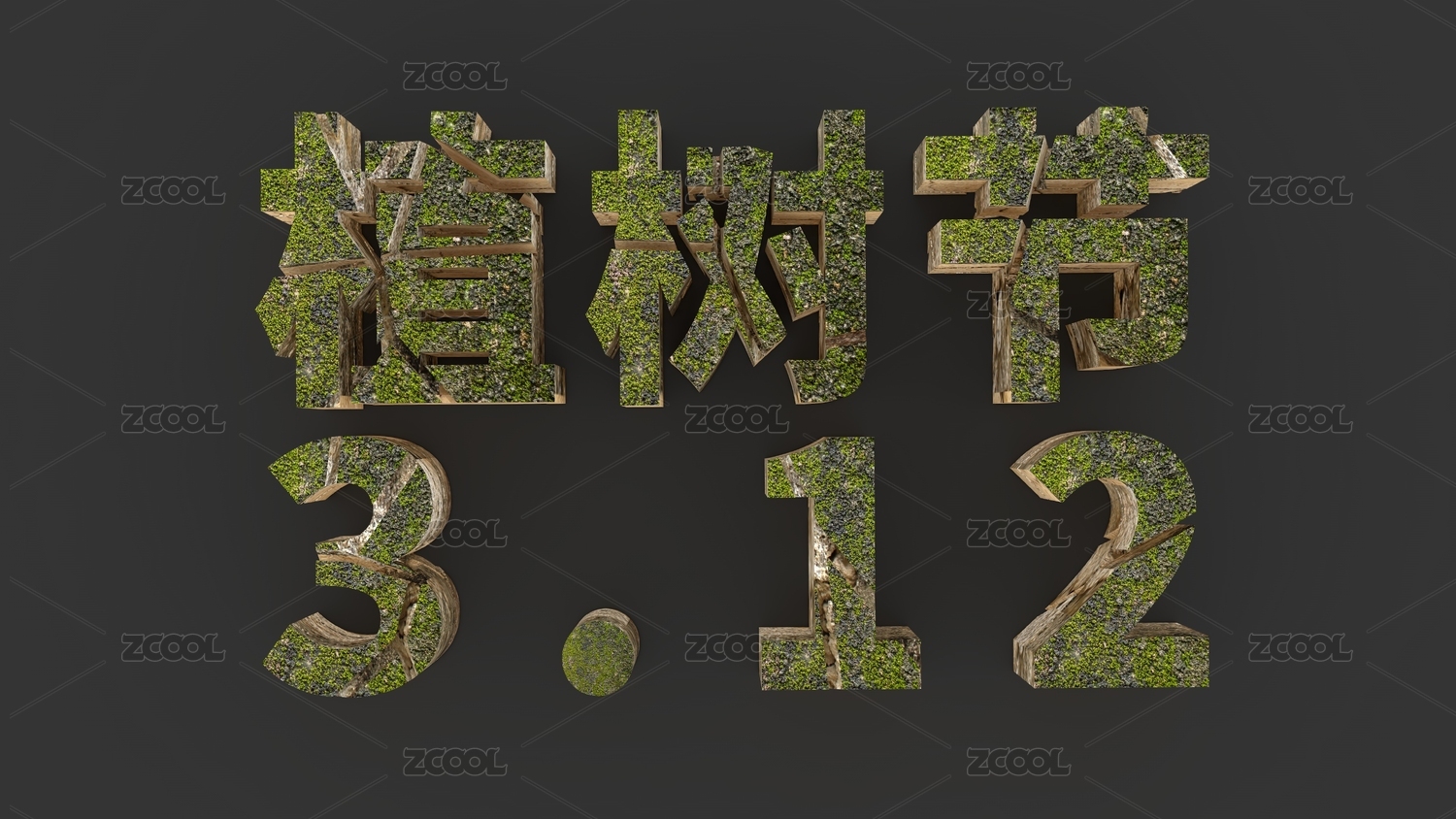 由褐色土壤和綠色地衣組成創(chuàng)意文字