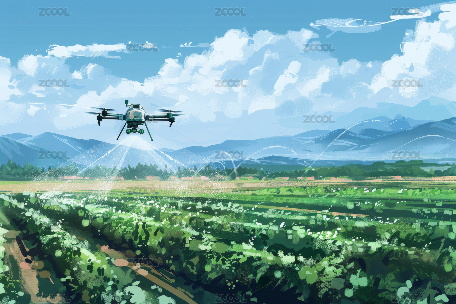無人機(jī)為農(nóng)作物田地加氫插畫