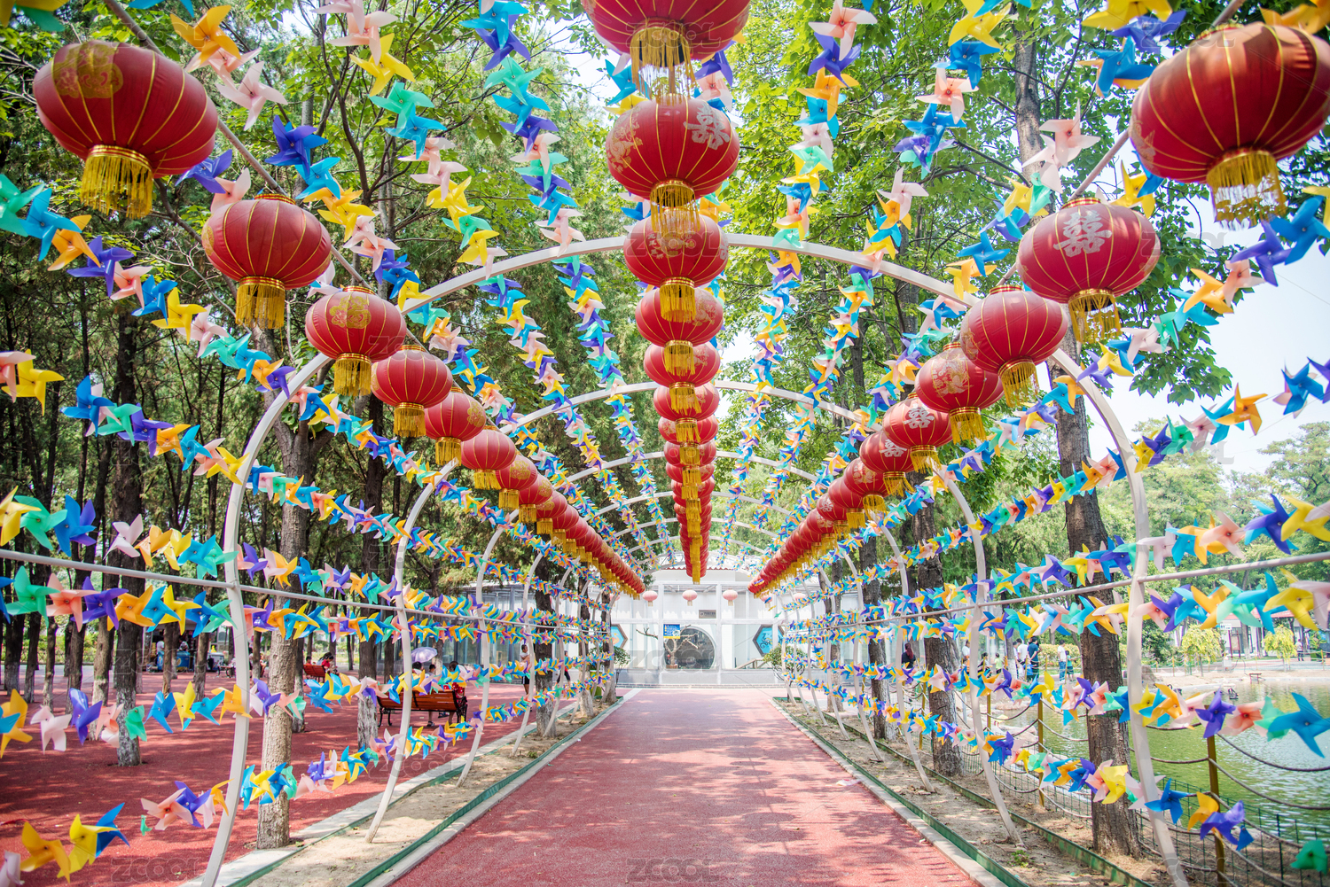 新年春節(jié)里掛燈籠慶祝,梅花盛開喜鵲飛上枝頭海報插畫背景