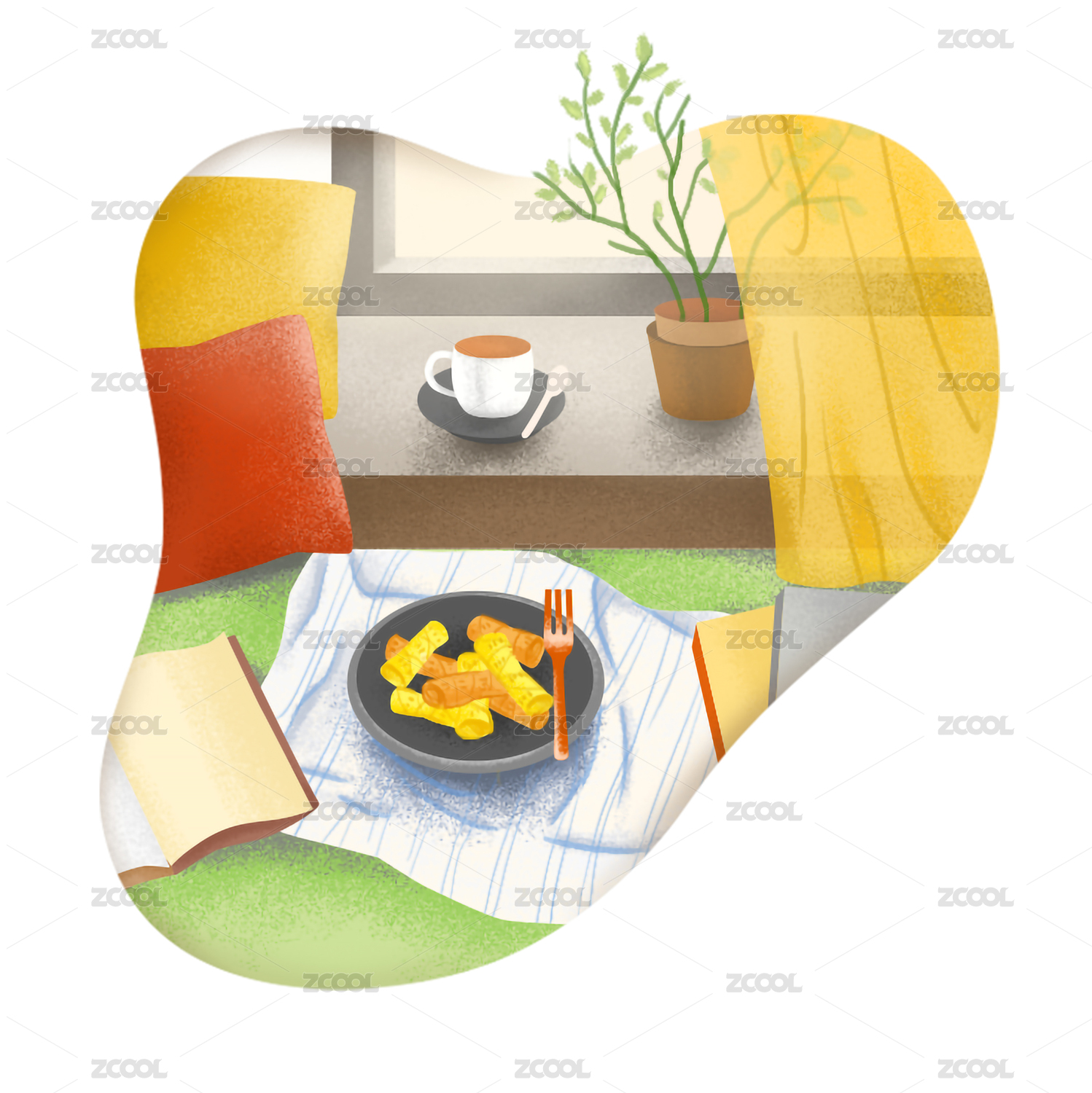 喵星人幻想國度穿越吃貓糧扁平風(fēng)噪點插畫