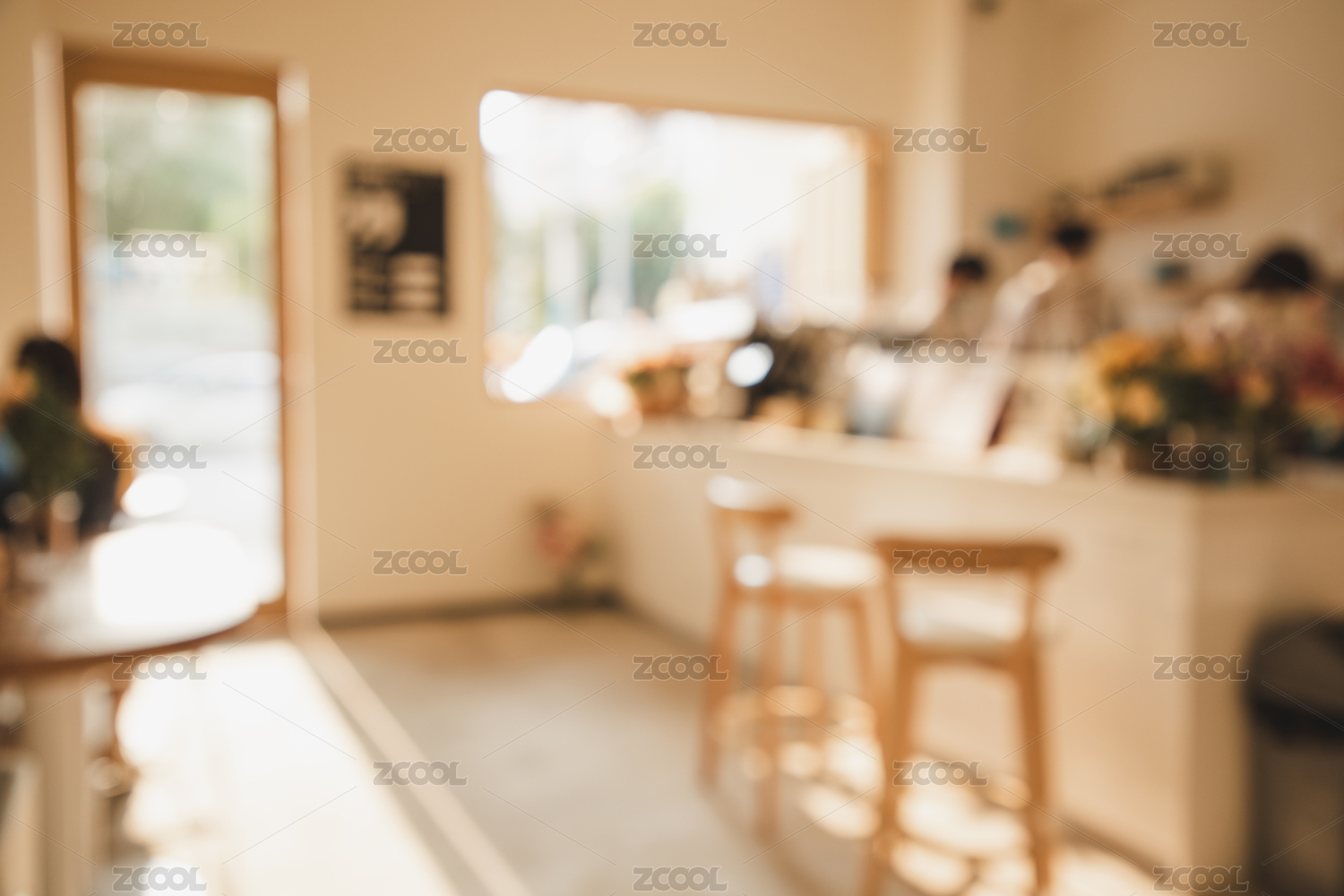 模糊散景日式極簡風(fēng)咖啡館背景