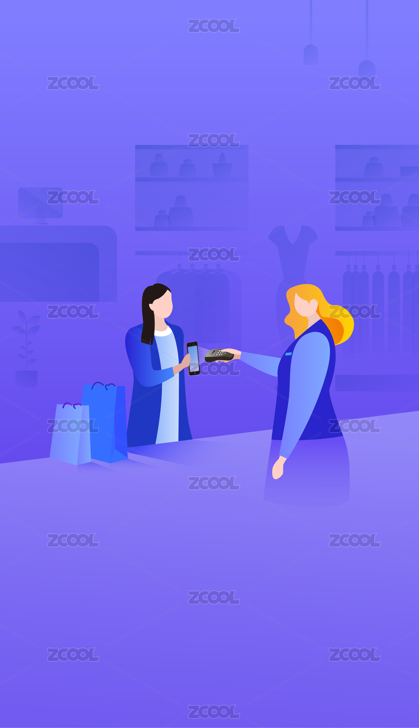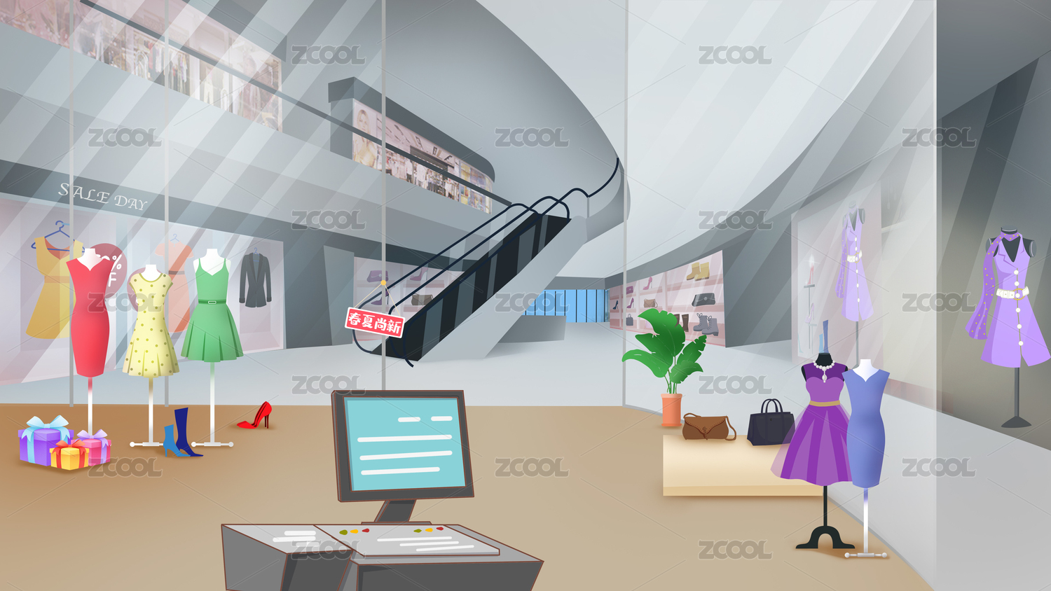 購物休閑娛樂商場室內(nèi)場景插畫