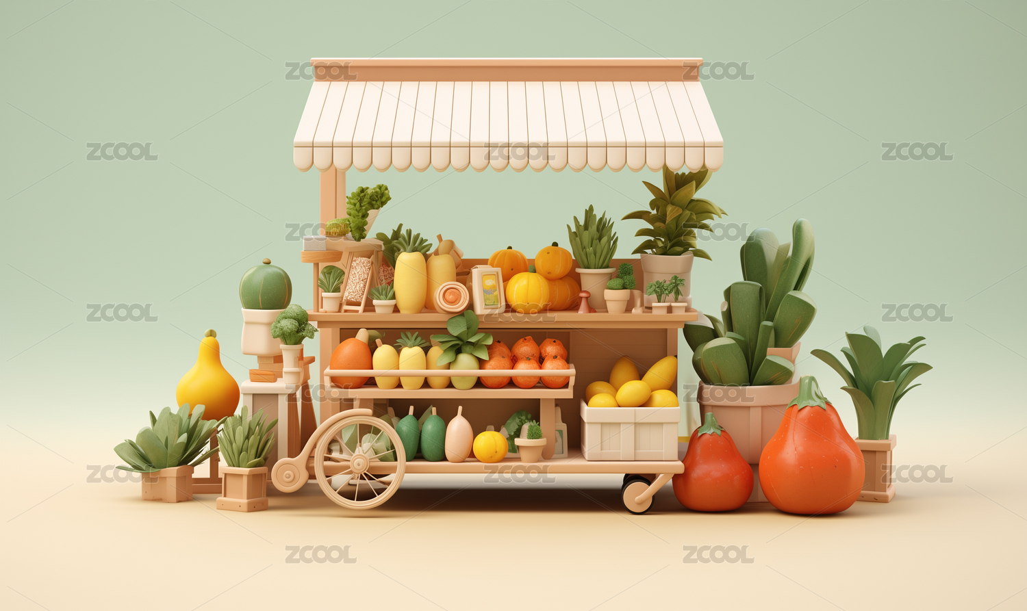 超市內(nèi)部收銀臺三維插畫