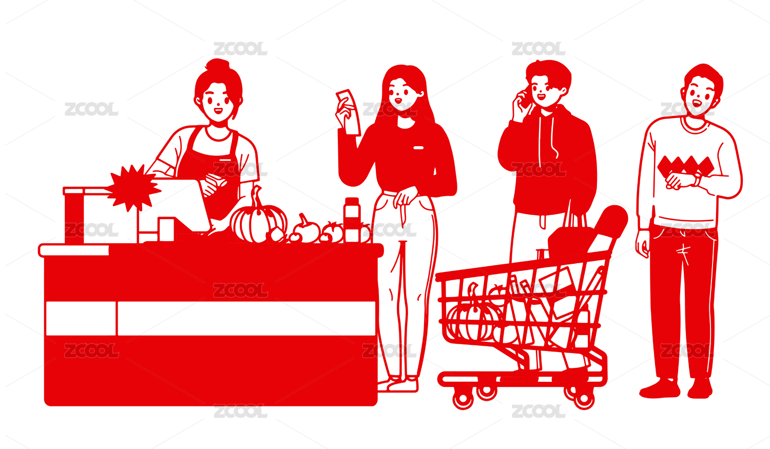 剪紙風(fēng)格在超市購買商品排隊結(jié)賬的人群